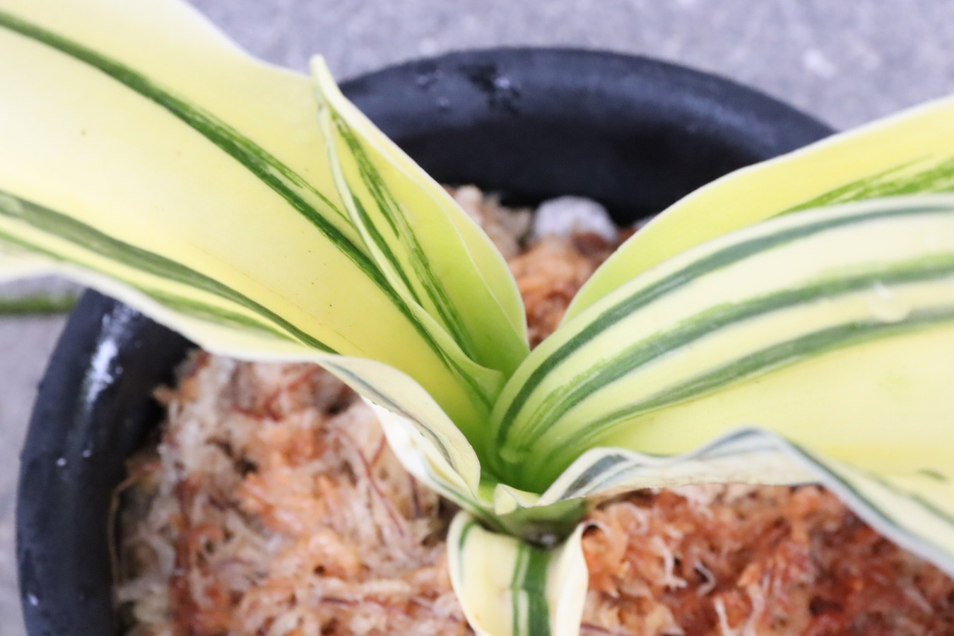 美しい縞柄と、幅広の葉、立ち姿に特徴がある