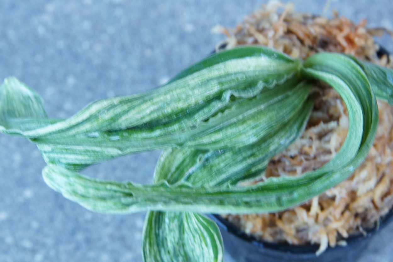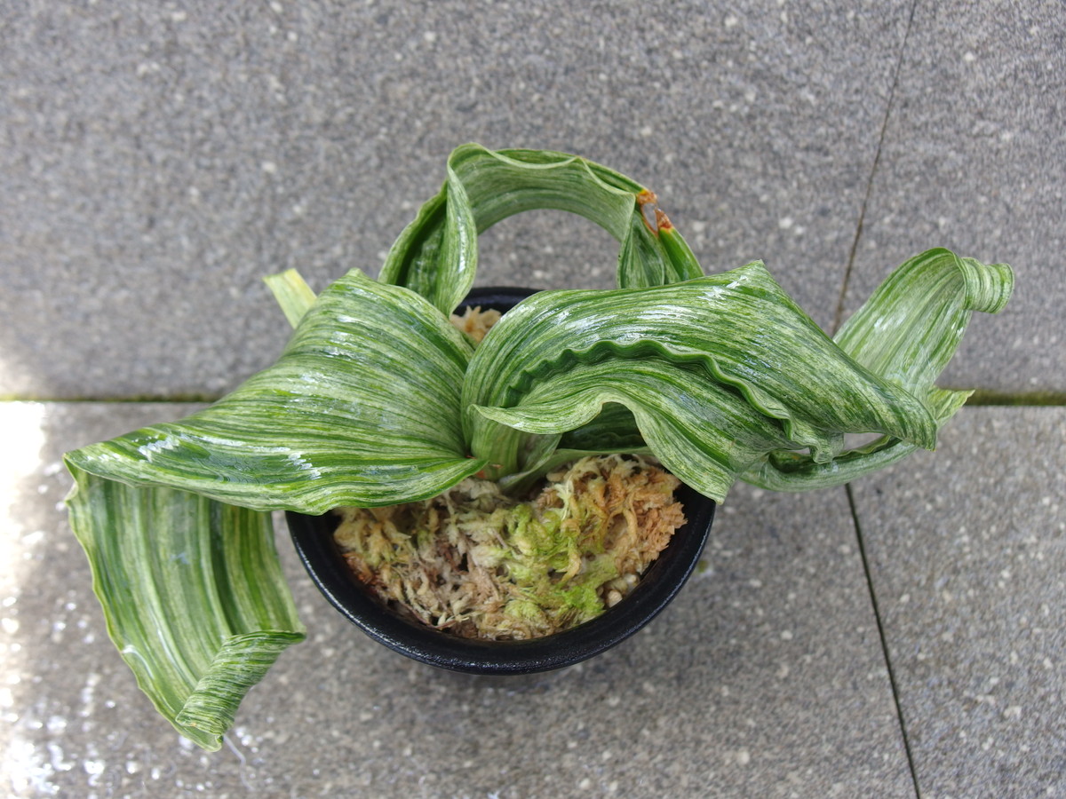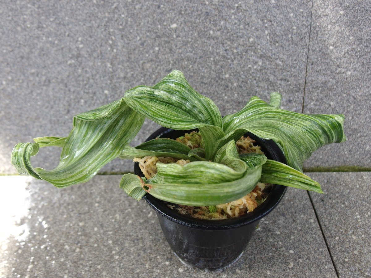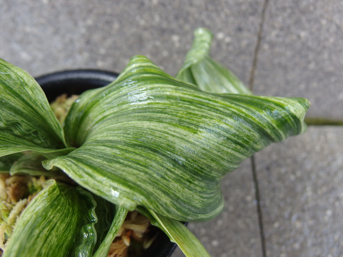 濃緑色の葉に美しい斑をみせる珍しい獅子