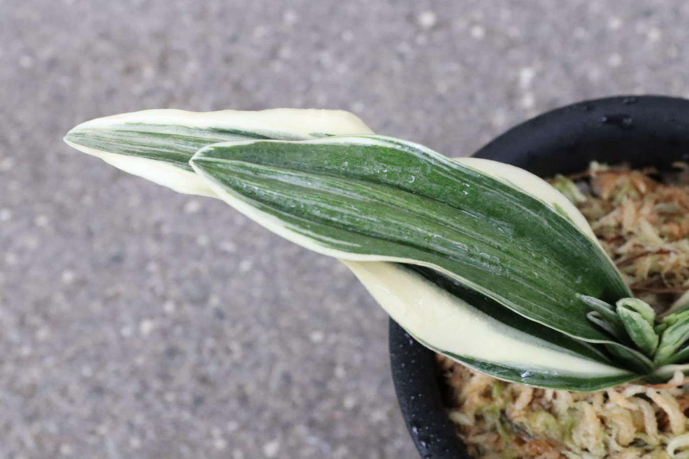 羅紗という系統の手のひらにのるサイズの万年青で、2~3年で芸を見せ始め、5年で親になる。見ごたえのある豊綬楽にしたかったら、7年ほどかかるかもしれない。それだけ時間がかかっても、育てる価値がある品種。非常に丈夫で、力がつくと子上げもする。芋吹きで増やすことが多いので、殖えるのに少しだけ時間がかかる。なので、どうしてもより殖え易いもの(割り子がよく上がる品種)よりは価格は少しだけ高い。
