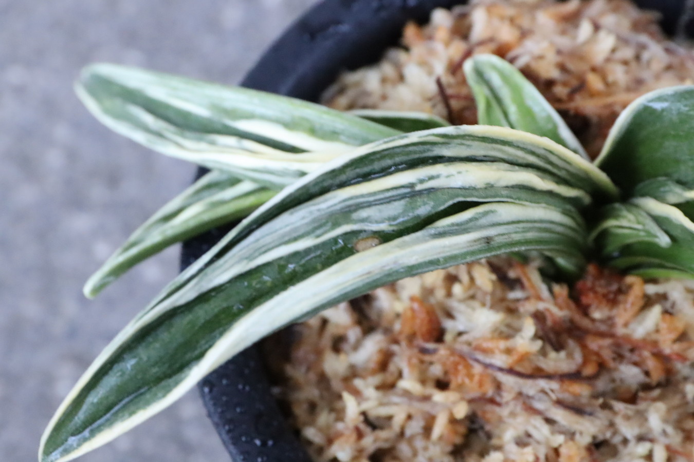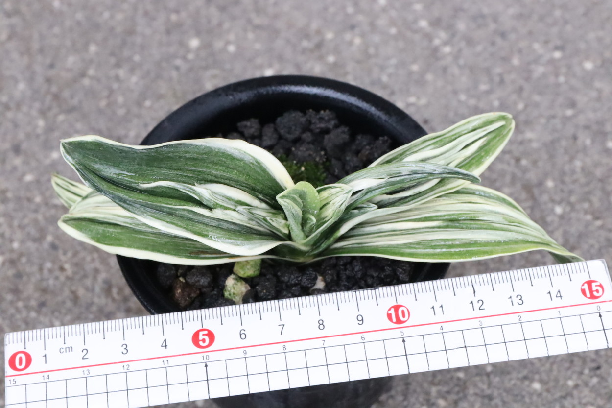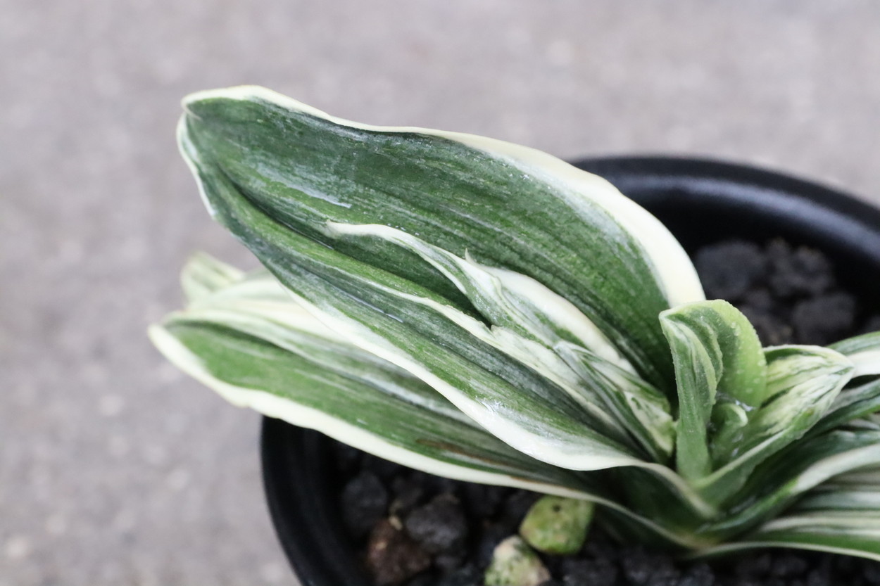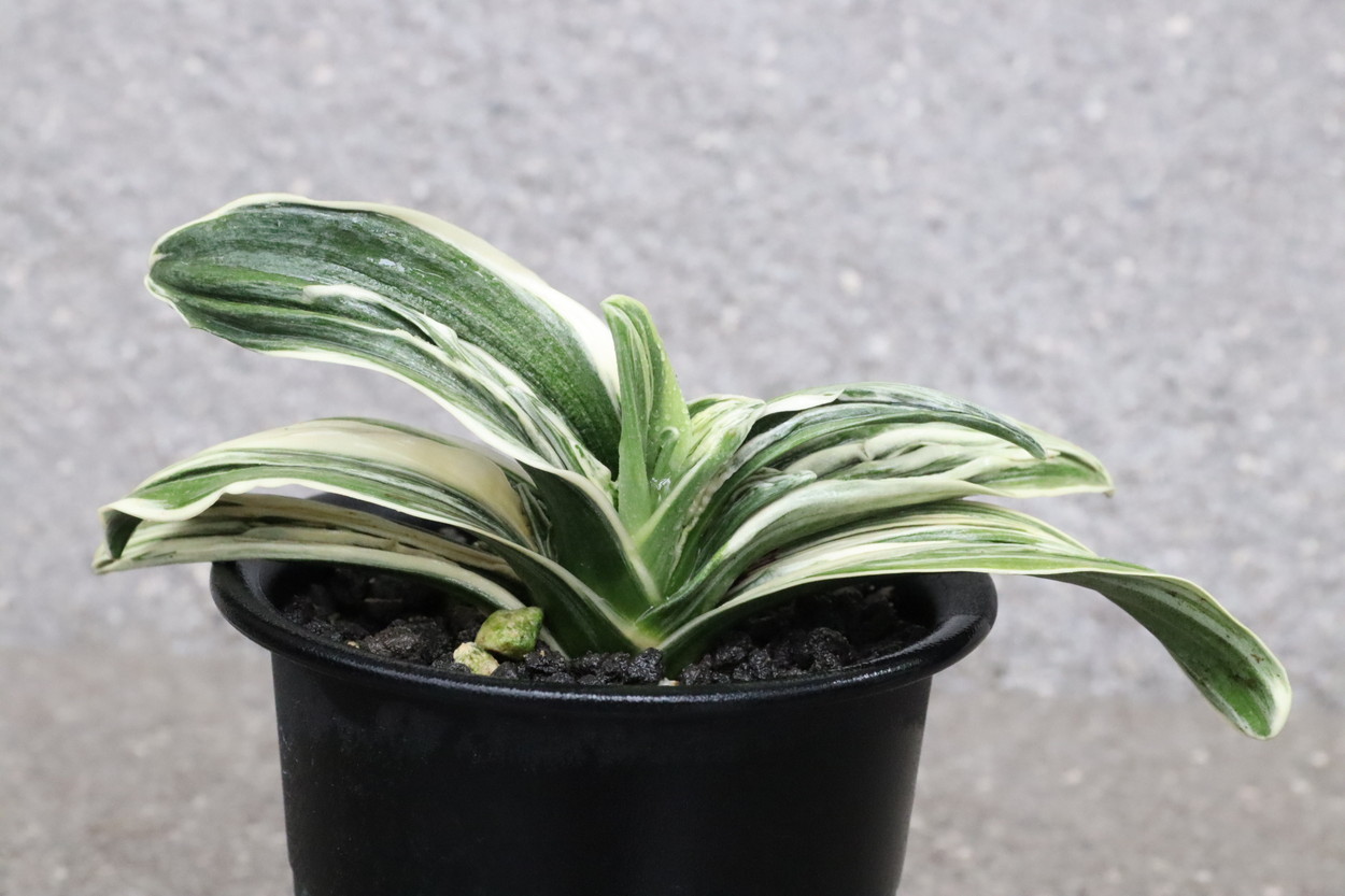濃緑色の厚い葉に雅糸竜、甲竜、のし葉を現す。腰太の重量感ある姿になります。繁殖は芋吹き、性質は強健で作りやすい品種です。