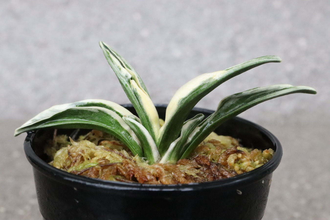 中型から小型。厚い葉に、やや淡い紺性に艶消しの地合い。乳白色の覆輪。葉巾は広く、葉長はつまり、力和ほどではないが、丸葉で愛らしい。総雅糸竜、変化をする甲竜、熨斗葉、剣葉と多芸で、首元太く力強い。