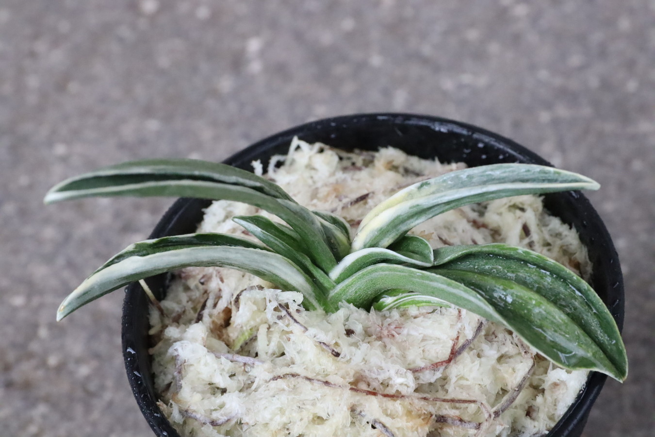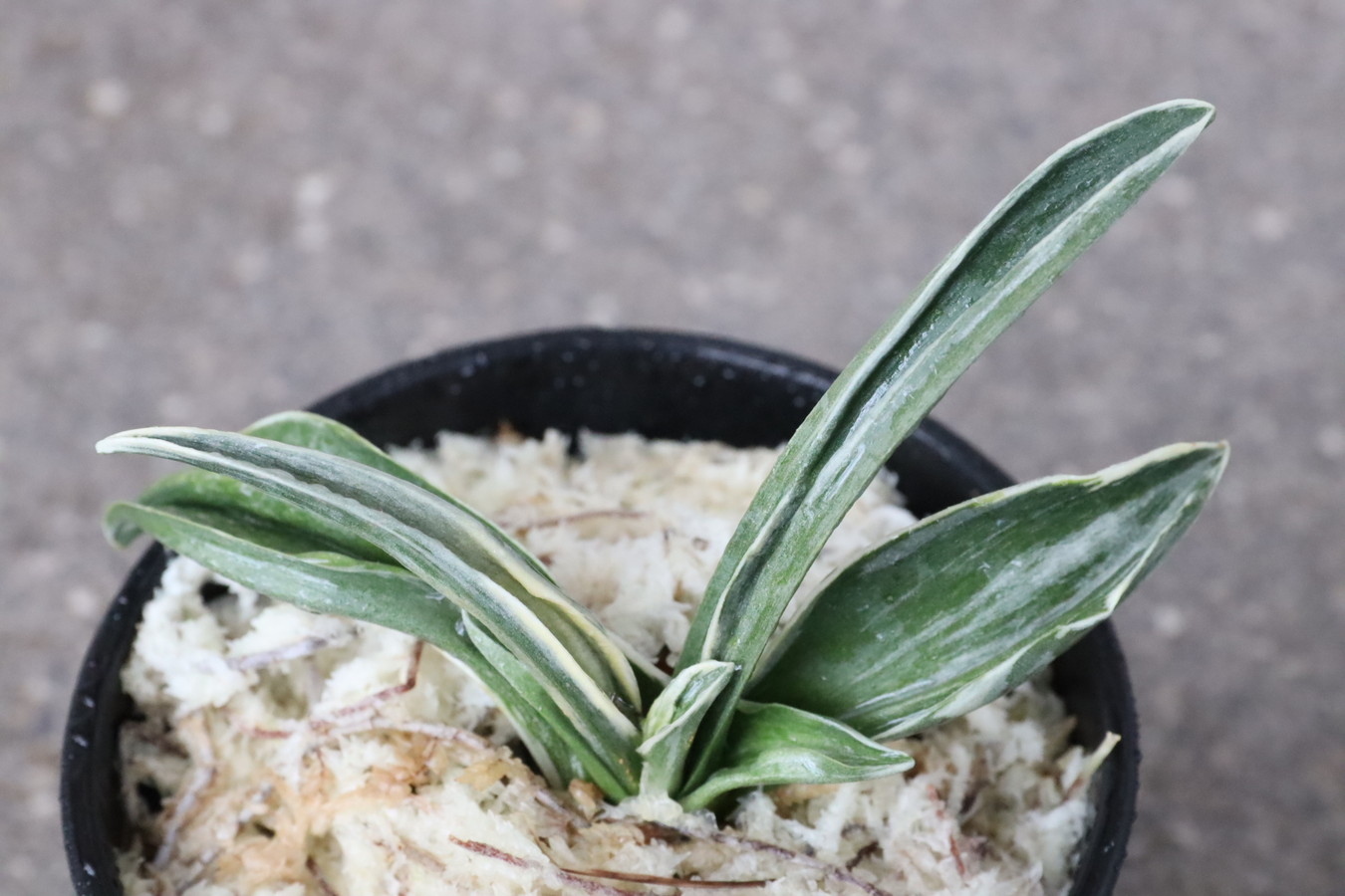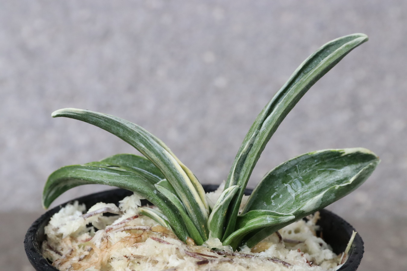 襟組姿美しい濃緑色の肉厚葉に熨斗芸、雅糸竜を見せる。