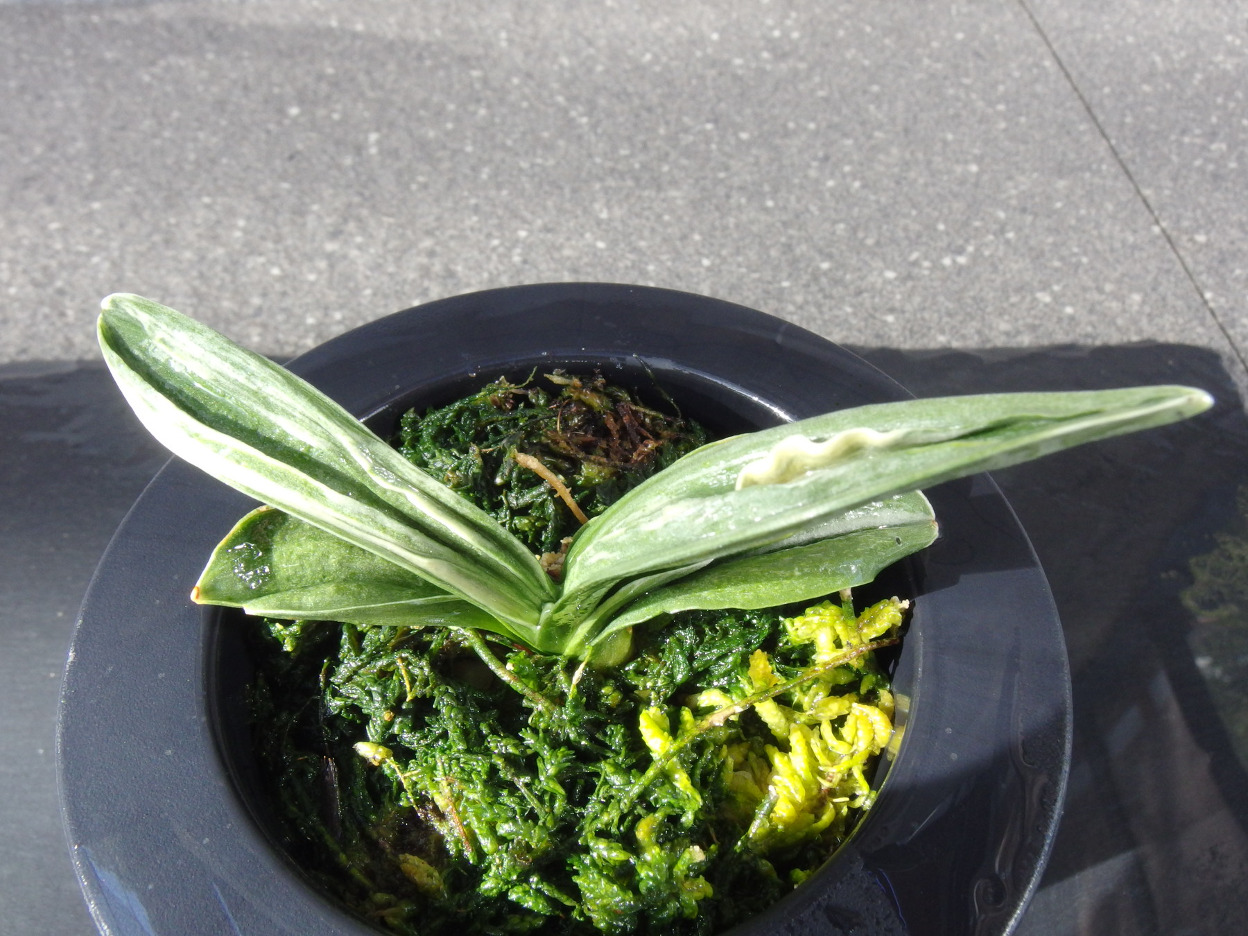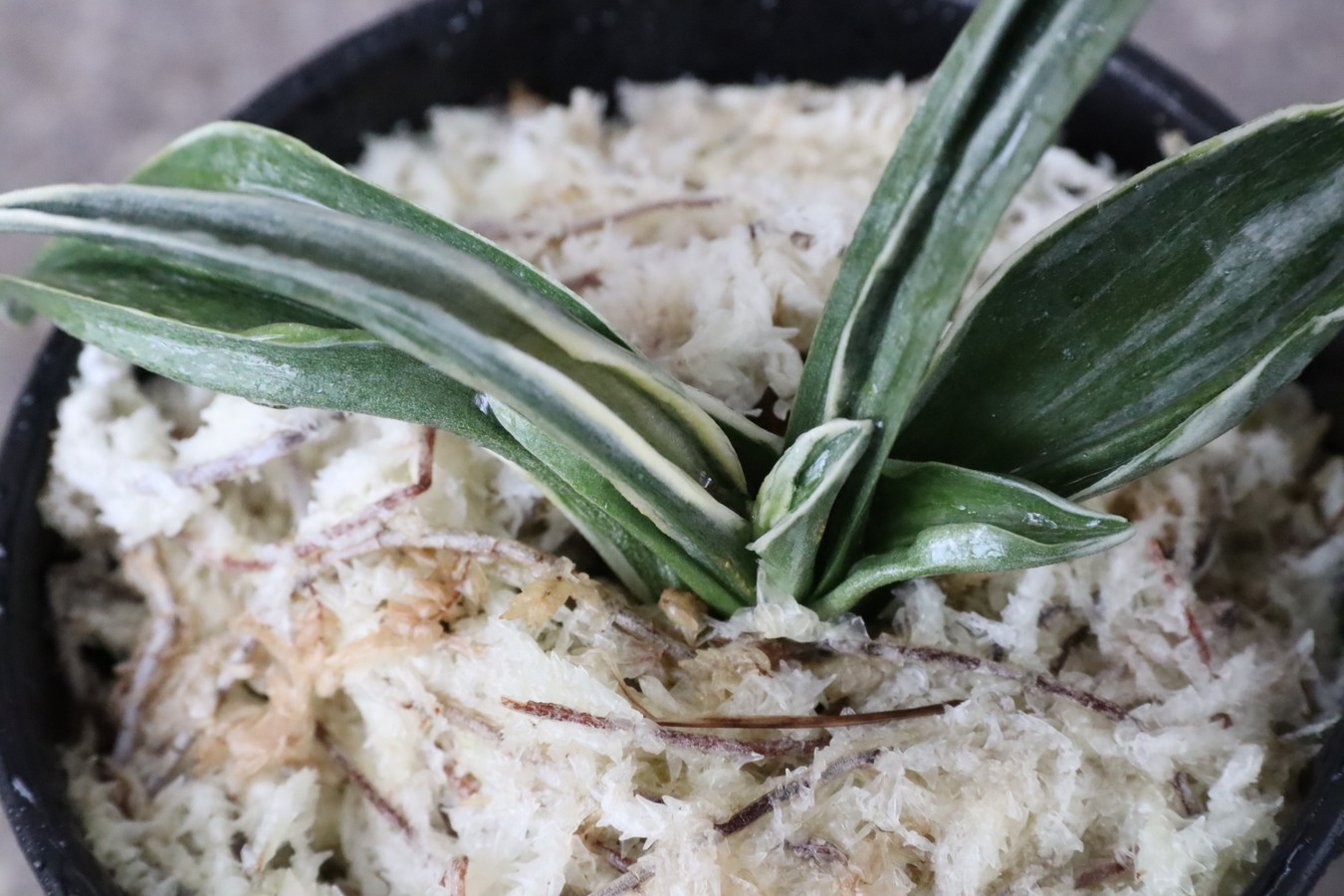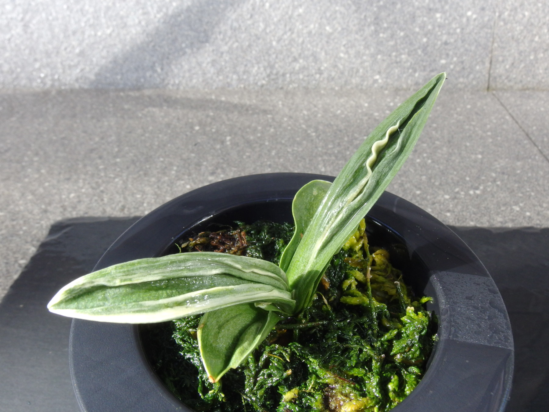襟組姿美しい濃緑色の肉厚葉に熨斗芸、雅糸竜を見せる。
