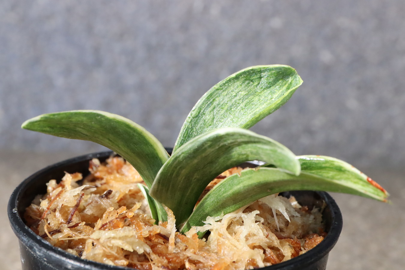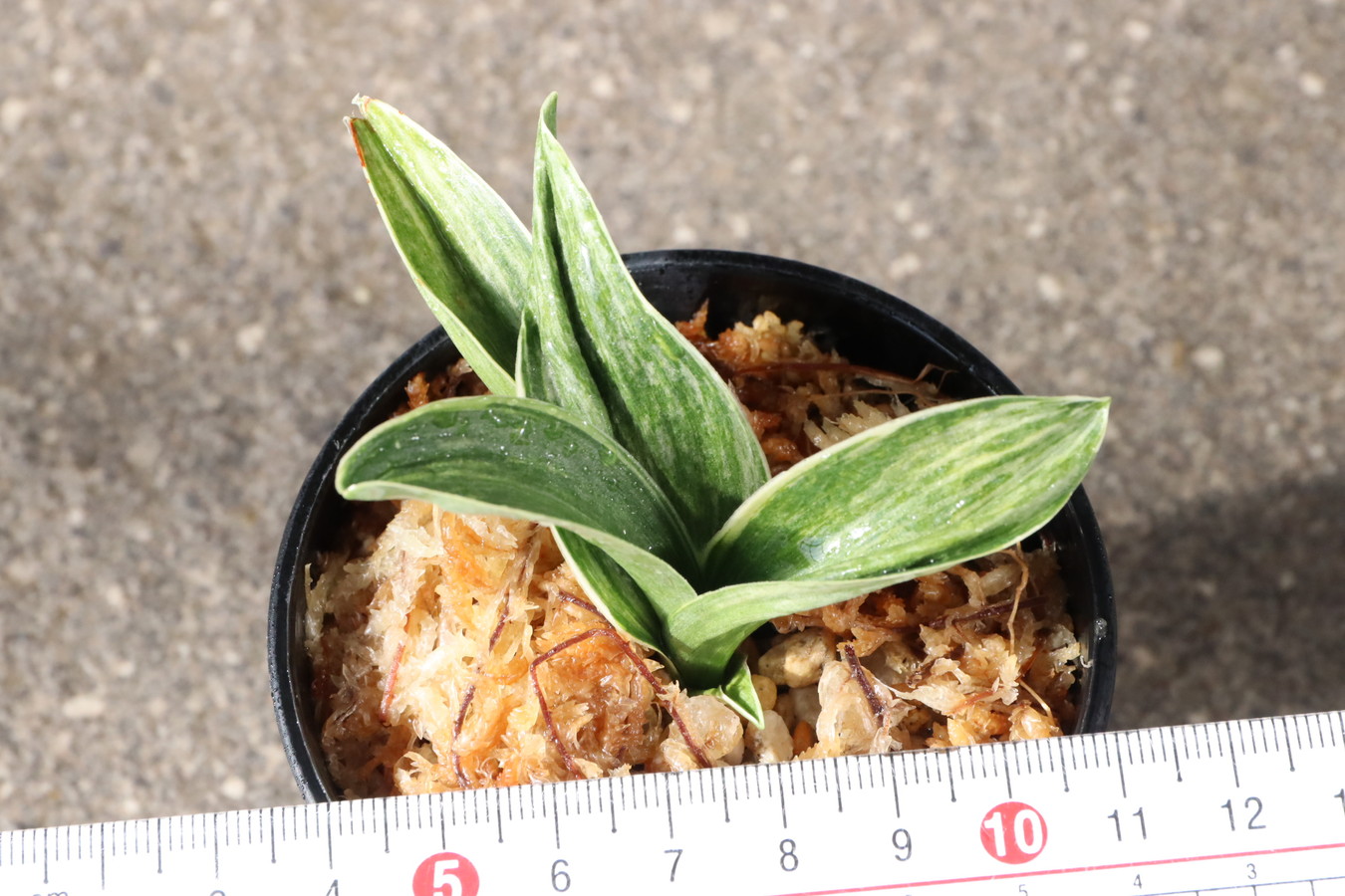 胡麻斑系の中型種。中立ち葉のバランスの良い葉姿に、鮮明な胡麻斑が美しく、深い白覆輪と見事に調和し、胡麻羅紗の魅力を最大限に生かした代表品種。低い雅糸竜に甲竜、跳ね竜、玉竜などの葉芸は多彩である。性質は普通で、子上げが良く、繁殖は良い。採光は、やや強めにするほうが胡麻斑が鮮明になり、葉芸も強くなる。施肥は中程度が良い。