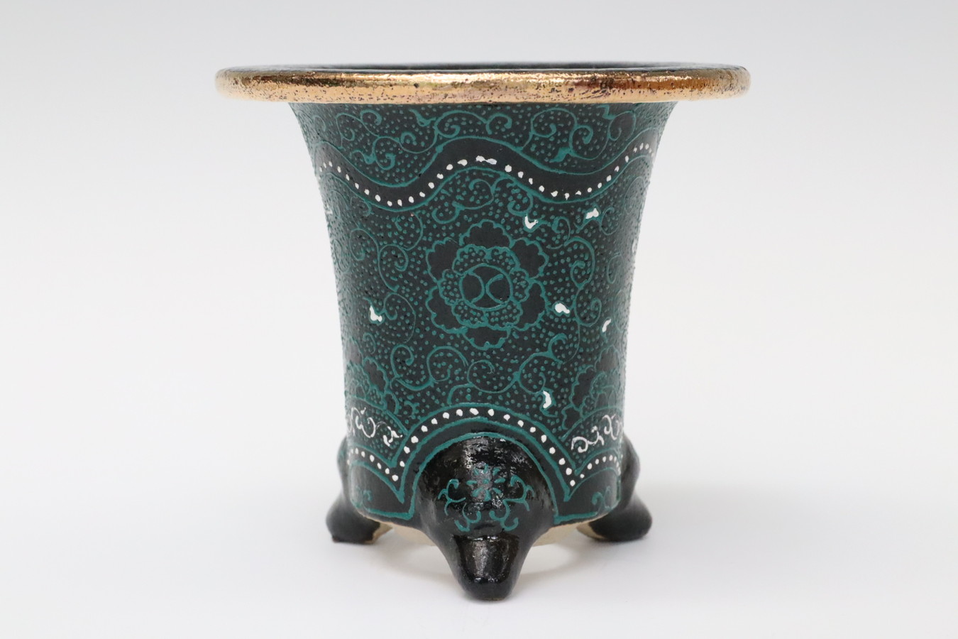 2265,吉祥唐草 萬年青錦鉢 外径約10.7cm 梅花サイン これだけの線の細さはない
