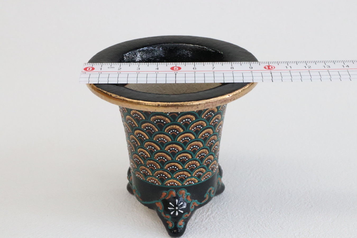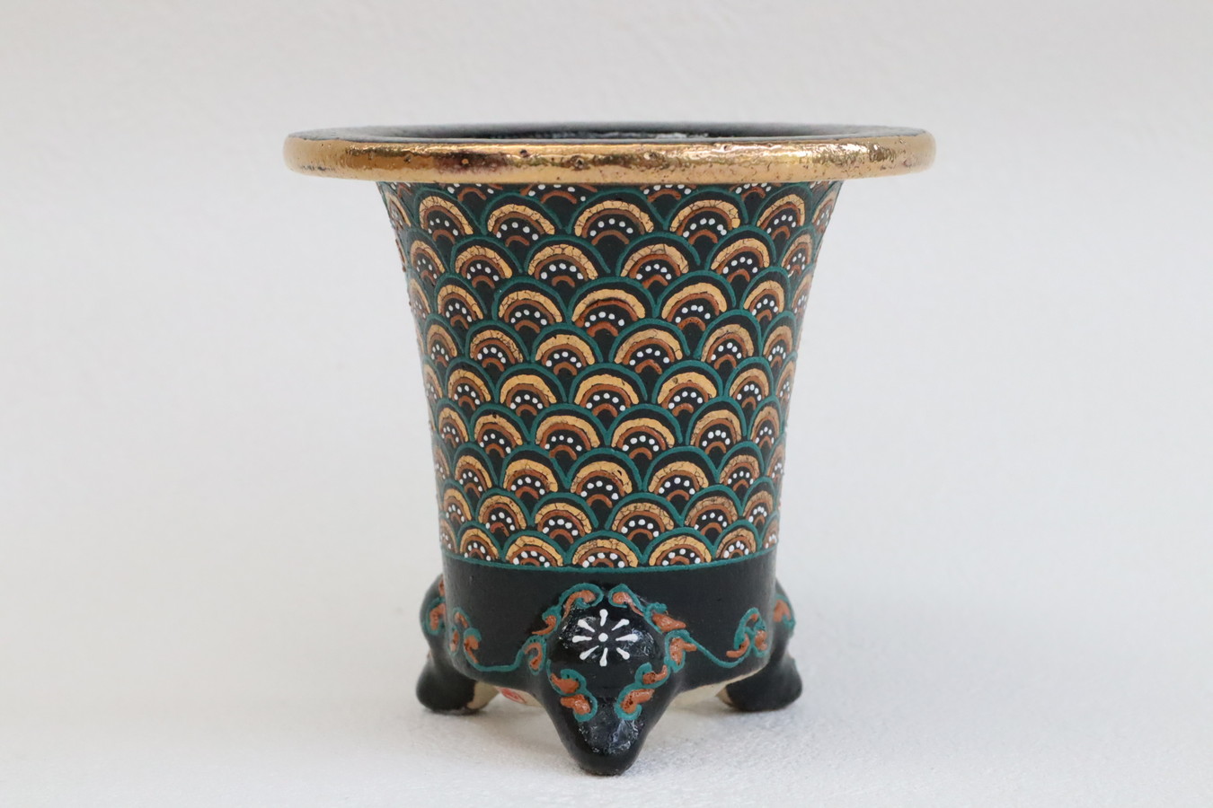 2507, 金青海波 萬年青楽鉢 外径約9.6cm 角とサイン