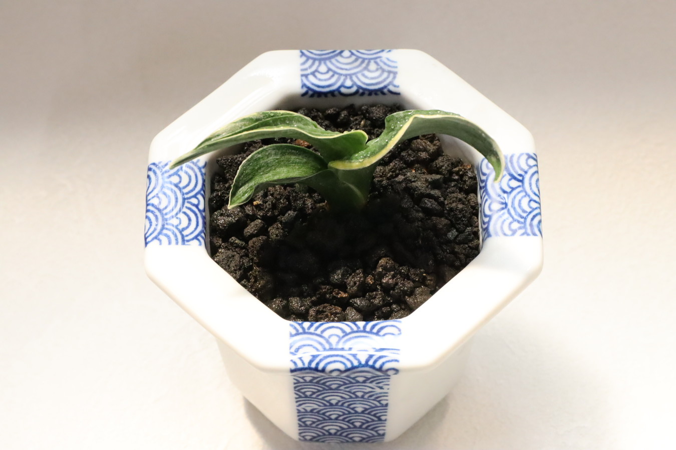 鉢は【青海波】となっていて、これは永遠によいことが続いていくように、という願いが込められています。万年青の名前が万年、青々と繁栄していく様を万年青というように、非常に縁起良いお祝いの贈り物や新築祝い、記念の品です。