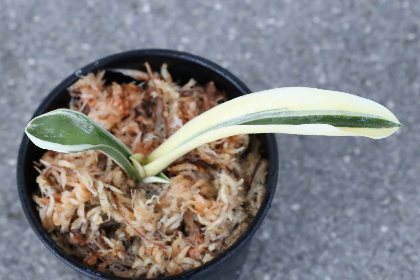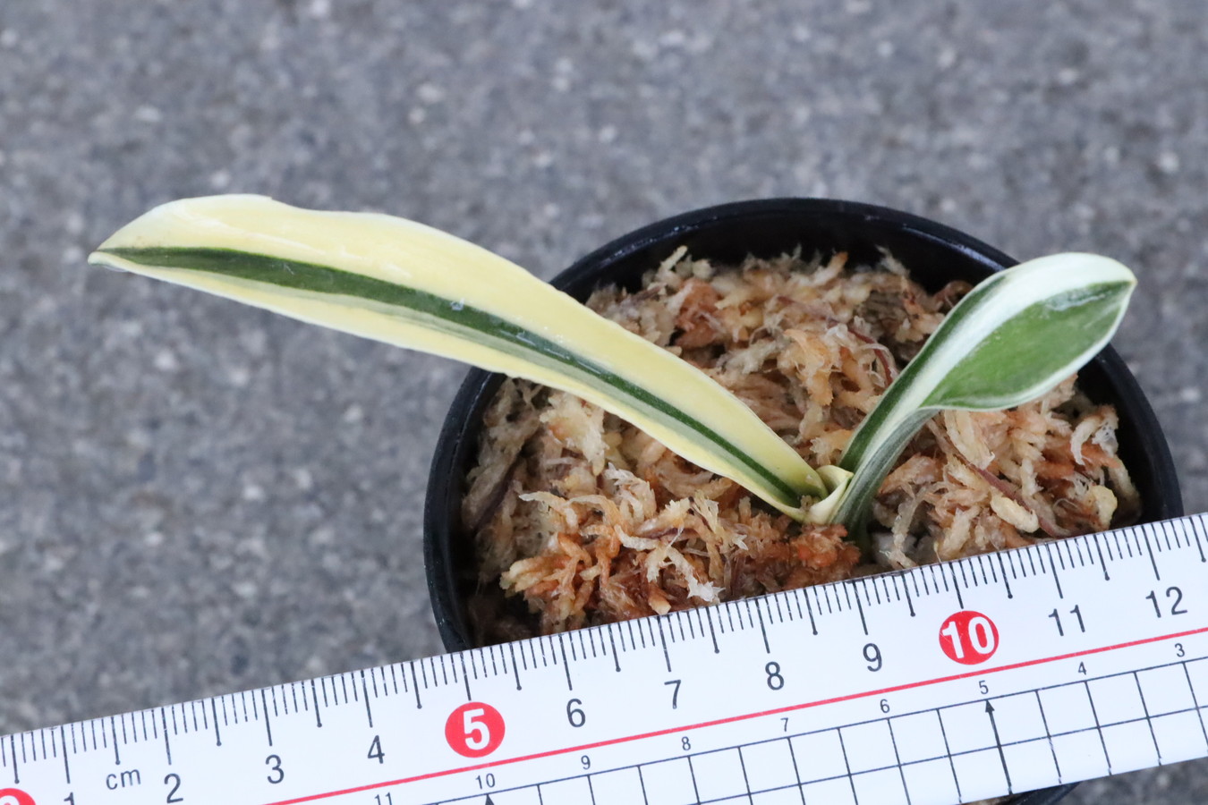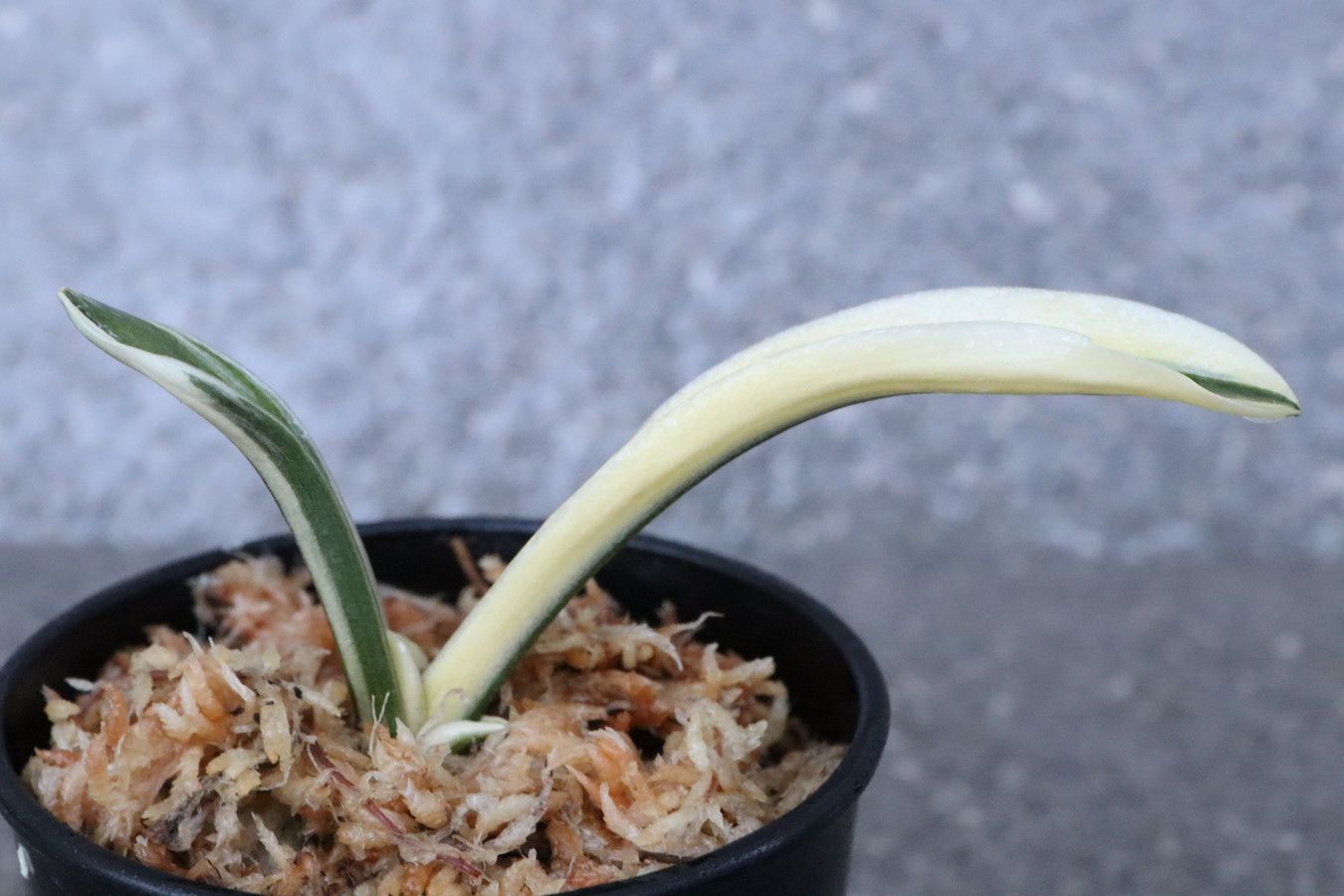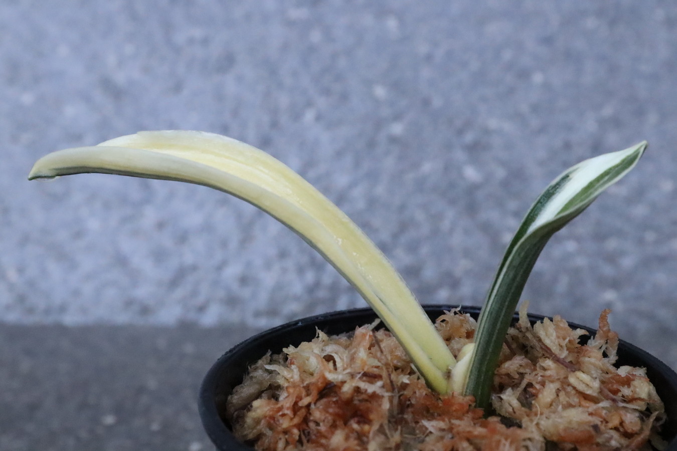 この『和光錦』はこの和の意味の通り、なごやかで人の心をやわらげる品種です。柔和な黄色の覆輪は優しく、素晴らしい芸を見せますが、落ち着いていて、みていてあきない品種です。