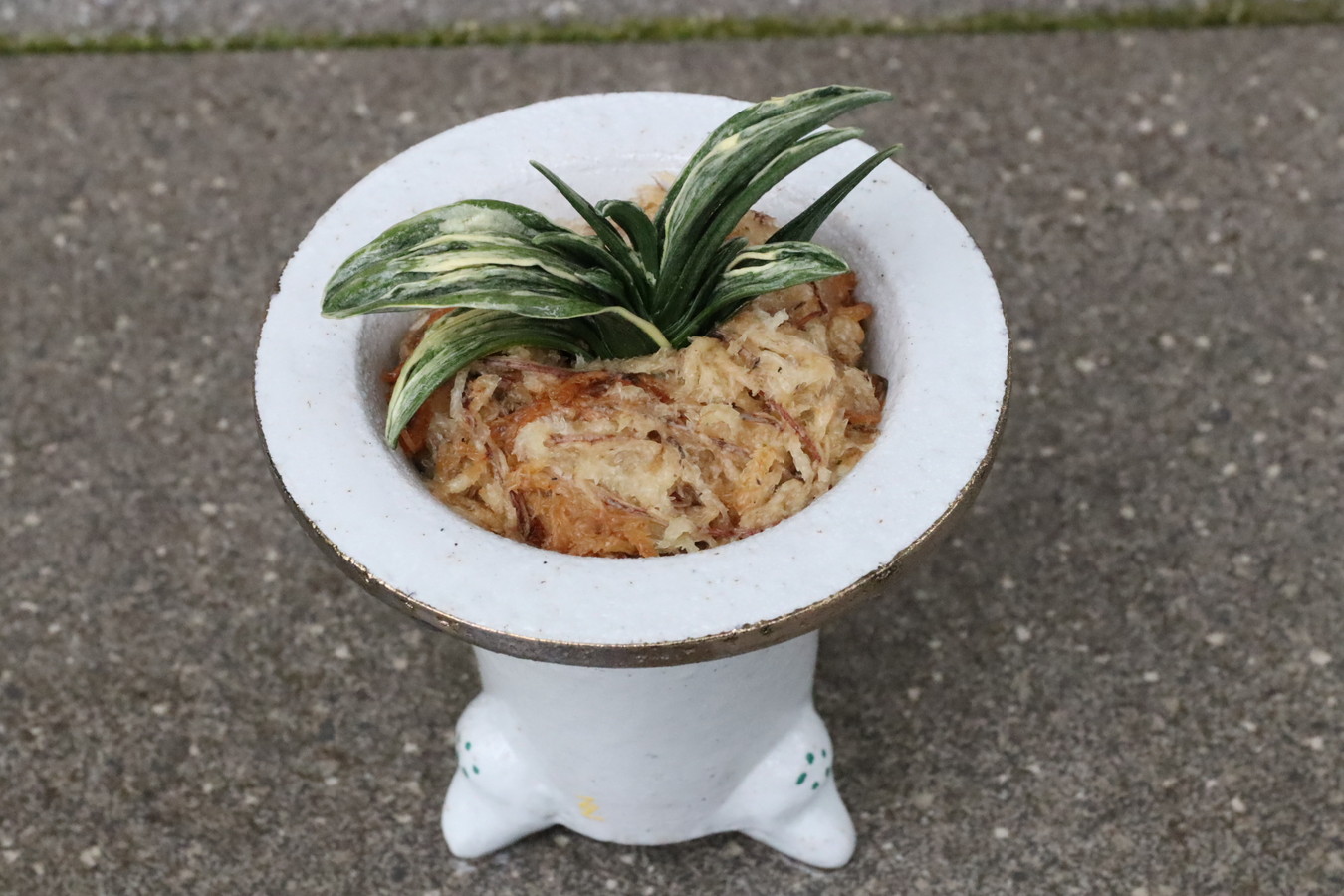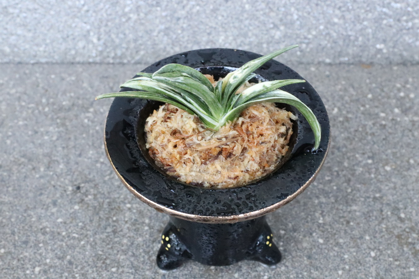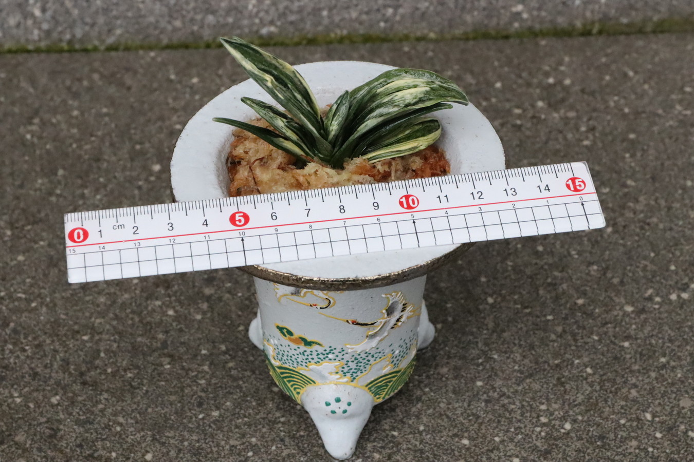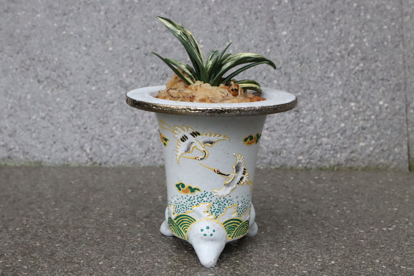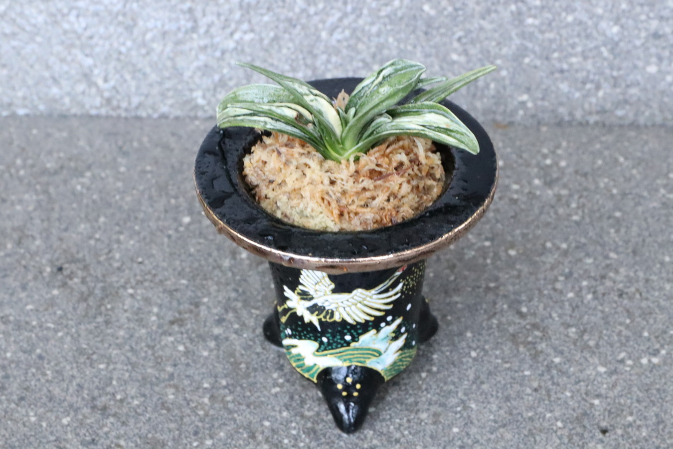 鉢は縁起の良い【鶴:長寿、円満】【波:永遠に良いことが続く】の鉢に植えて