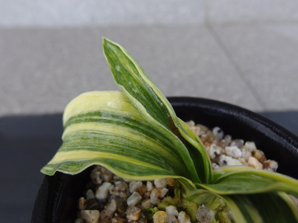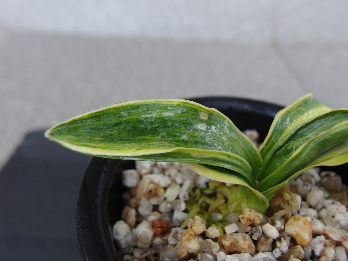 葉全体にゴマ斑がのり、斑がきらきらと光る