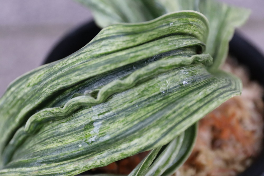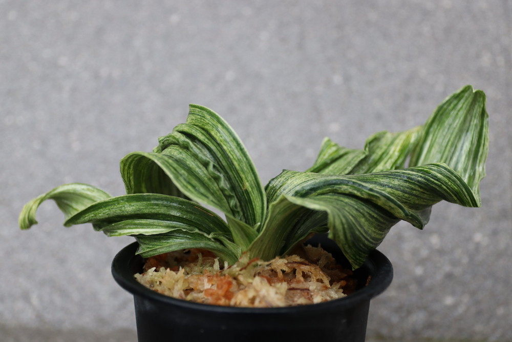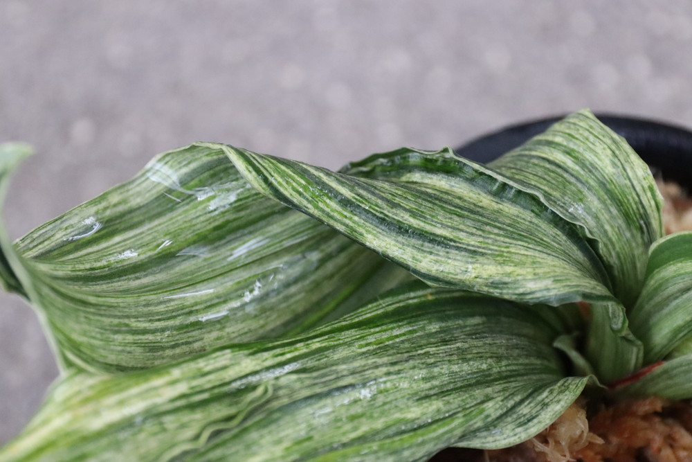 濃緑色の葉に美しい斑をみせる珍しい獅子