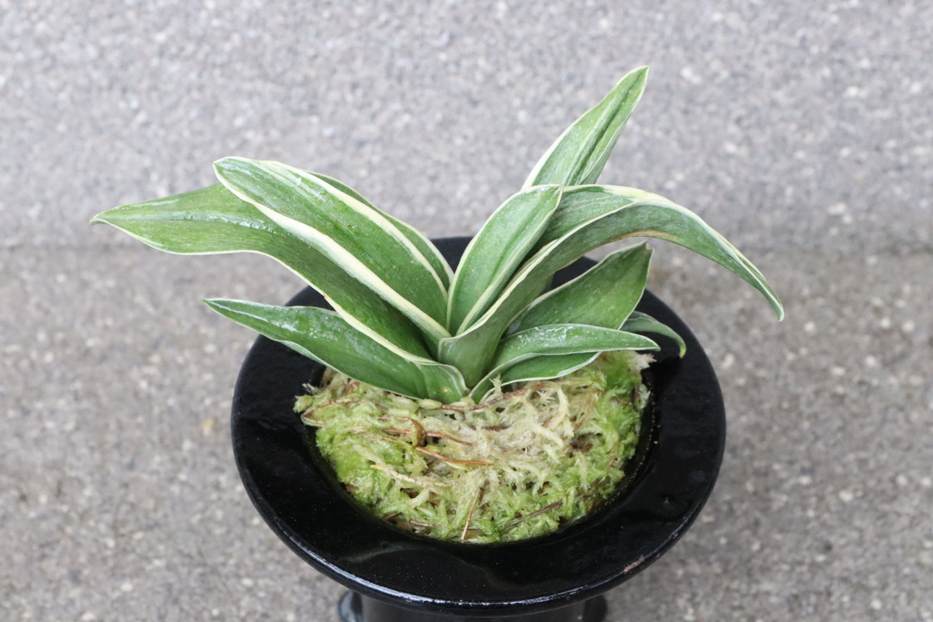 特徴がはっきりした品種が人気 万年青を好きなすべての人が知っている品種。羅紗という小型の万年青で、2~3年で芸を見せ始め、5年で親になる。見ごたえのある新生殿にしたかったら、7年ほどかかるかもしれない。それだけ時間がかかっても、育てる価値がある品種。非常に丈夫で、力がつくと子上げもする。芋吹きで増やすことが多いので、殖えるのに少しだけ時間がかかる。なので、どうしてもより殖え易いもの(割り子がよく上がる品種)よりは価格は少しだけ高い。