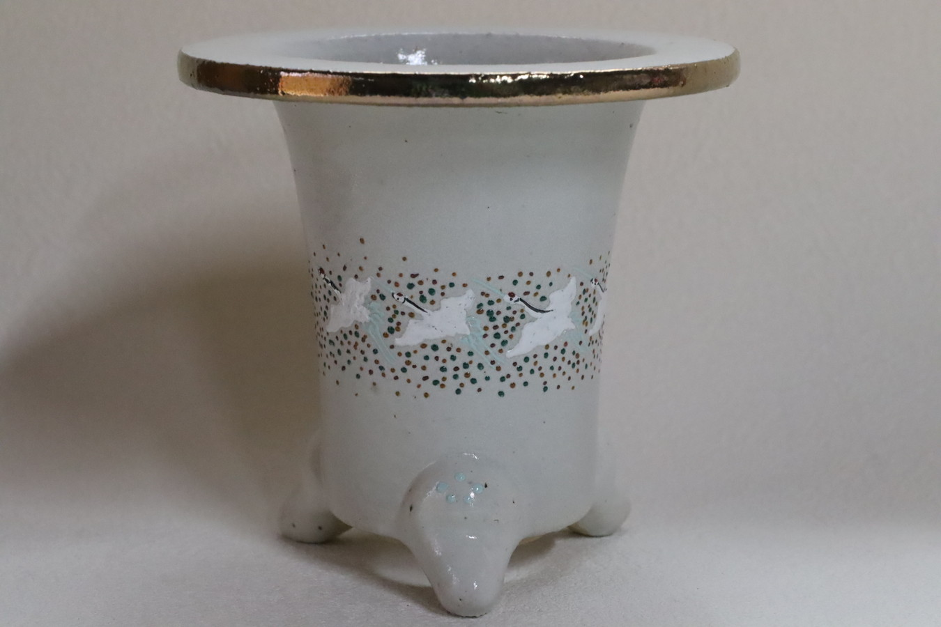 一点物中古鉢 古鉢は古いもの、使ってあるものなので、状態がさまざまです。 小さなキズ、入、汚れ、ホツあります。楽焼は天正年間(約400年前)に始まる日本独特の焼き物です。楽焼は《急熱急冷》という特殊な焼成方法をとります。急熱急冷だから、鉢に細かな 微細な穴ができ、通気を良くしています。おもと鉢 楽鉢 楽鉢の樂しみ絵付け師 布施覚