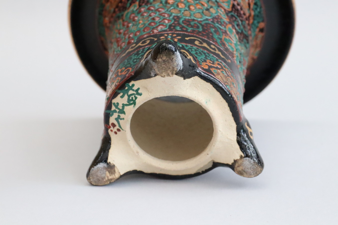 2512,五龍菊花 吉祥紋 外径約10.8cm 梅花サイン 新作 【33000→窯きず特価】