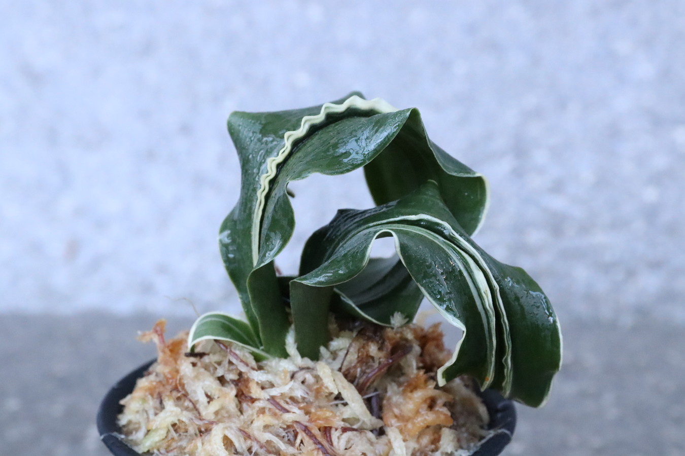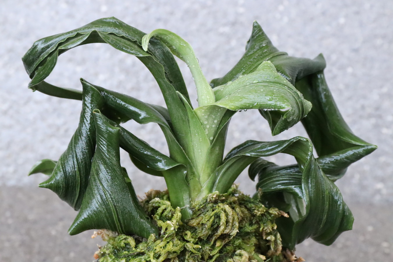 濃緑色の角巻き葉に低い総雅糸竜と二面甲竜をみせる美しい品種。