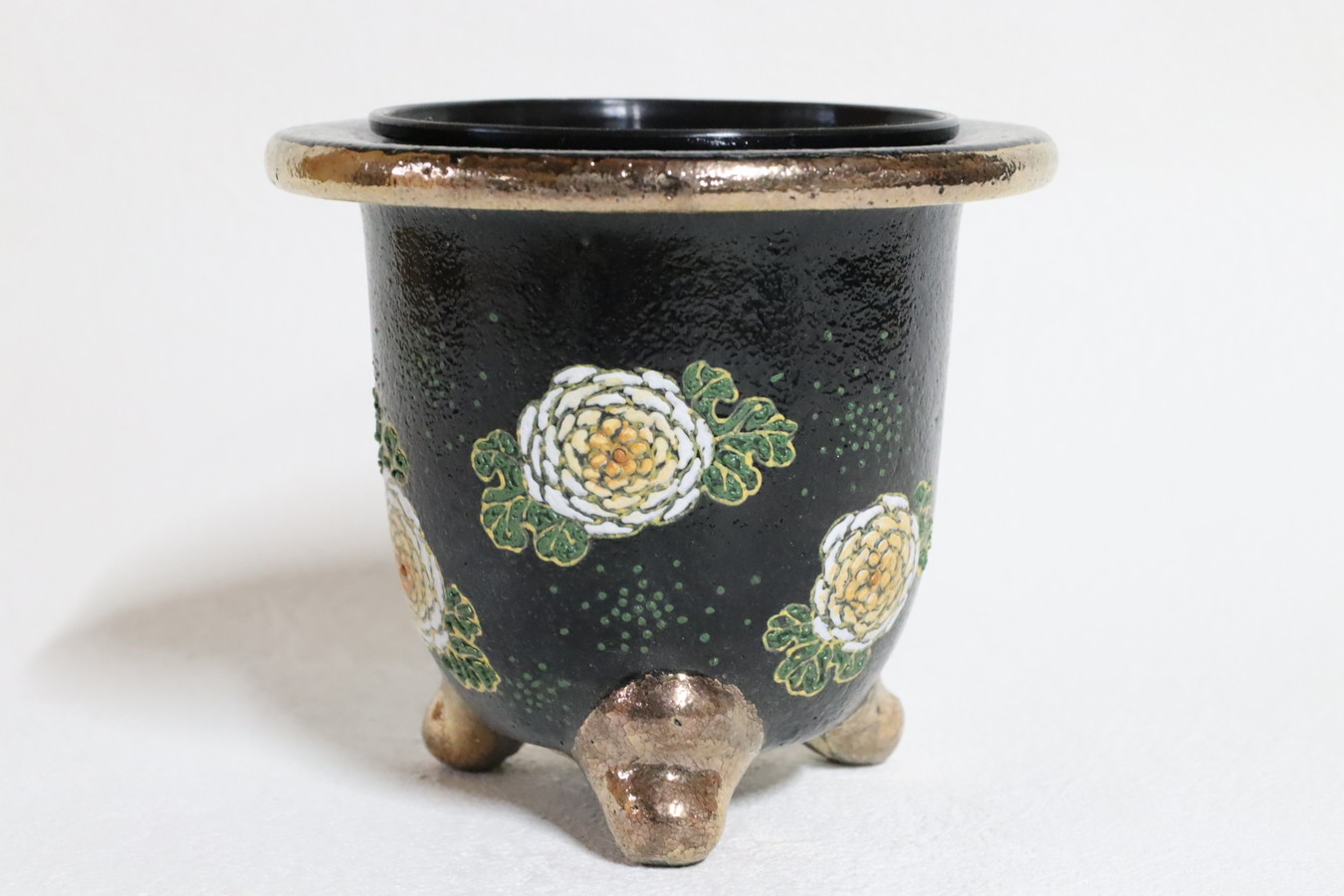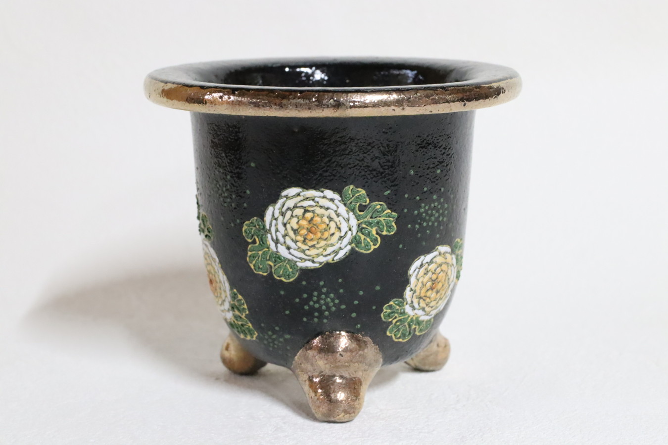 代々お付き合いのある窯元と試作を重ねてきましたが、焼き物の特性上、寸法は土、季節、その日の天気、湿度によっても変わり、自然に大きく左右されます。本当に腕がある作家さんがやってもこの寸法は時の運で、普段の鉢製作と比べてもロスは大幅に出てきます。それでも、この錦鉢で万年青を楽しむのは徳川家康公が万年青を楽しむ以前からと言われています。そんな日本の万年青の楽しみを是非多くの人に味わっていただきたく、なんとかここまで漕ぎ着けました。手に取っていただいて、万年青と錦鉢を楽しんでください。