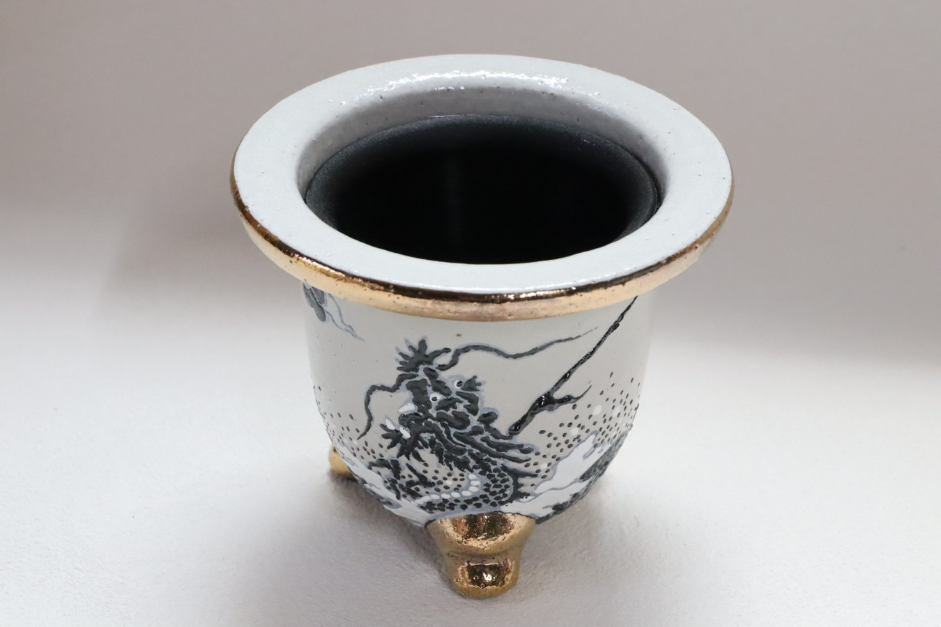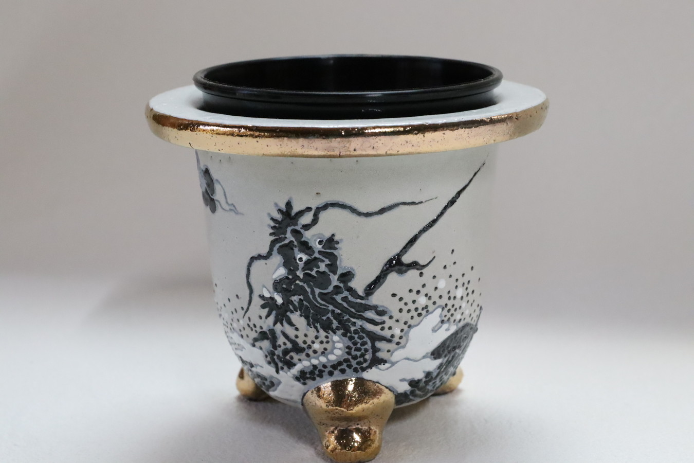 2397,白地黒龍 外径約10.1cm 高さ約8.7cm 亘サイン カバー鉢?