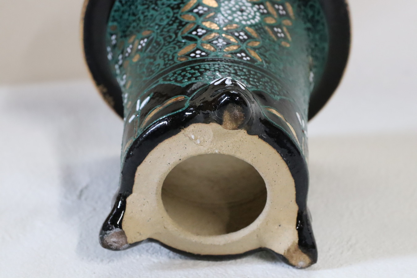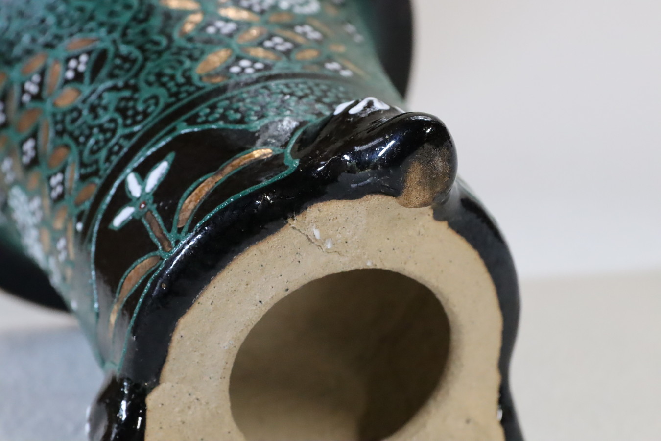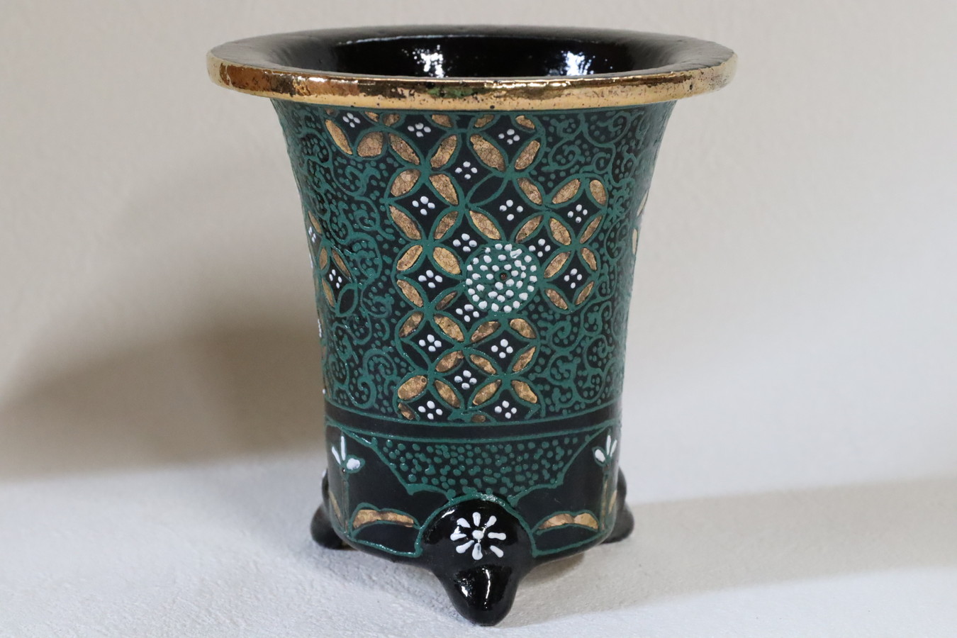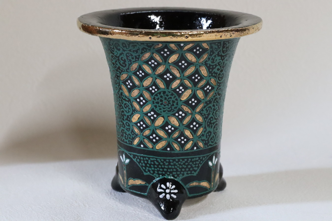 2358,古代鉢 七宝唐草 おもと樂鉢 外径約10.6cm 高さ約10.9cm 縁浅胴太珍鉢