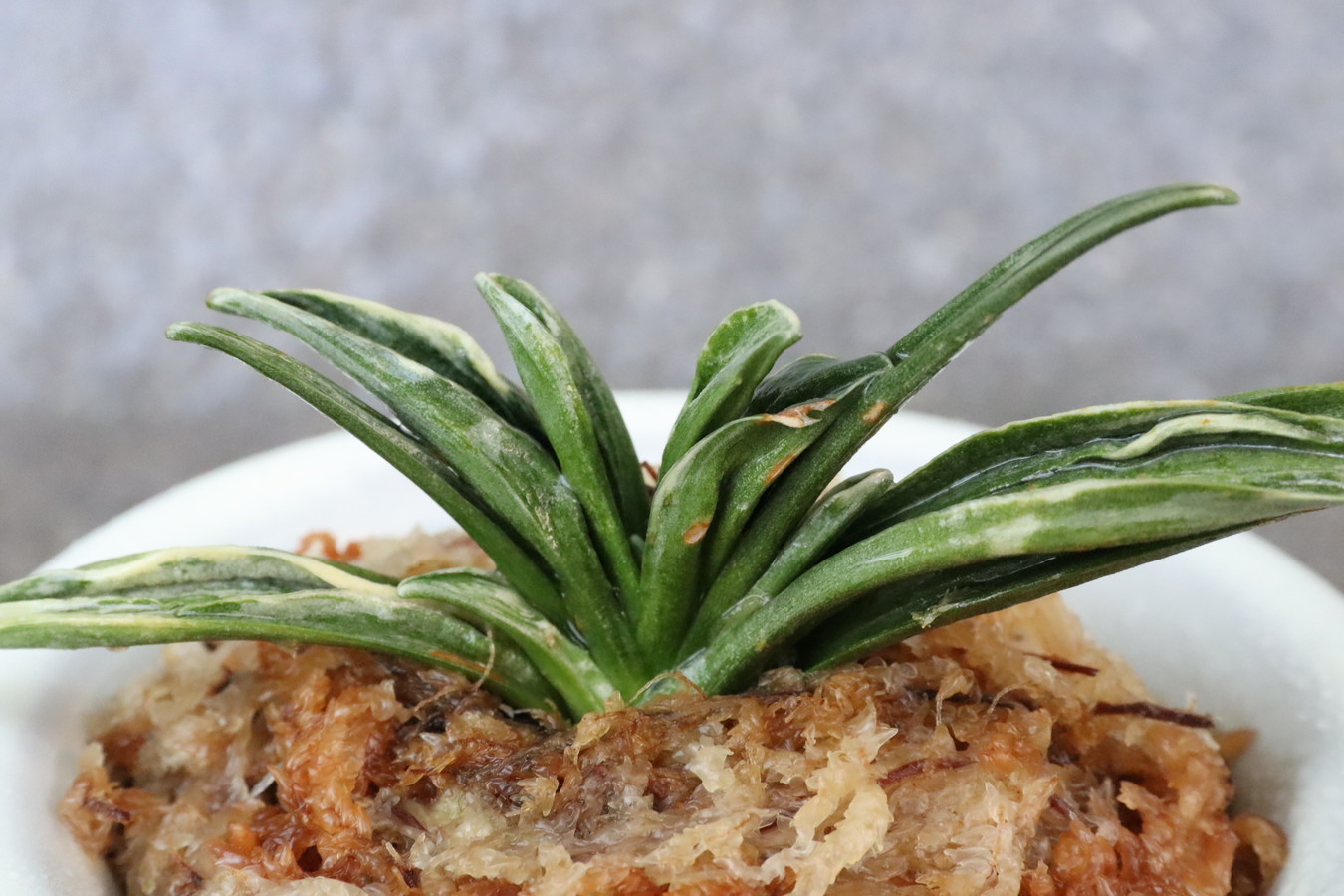 濃緑色の肉厚葉に雅糸竜、熨斗葉を現します。