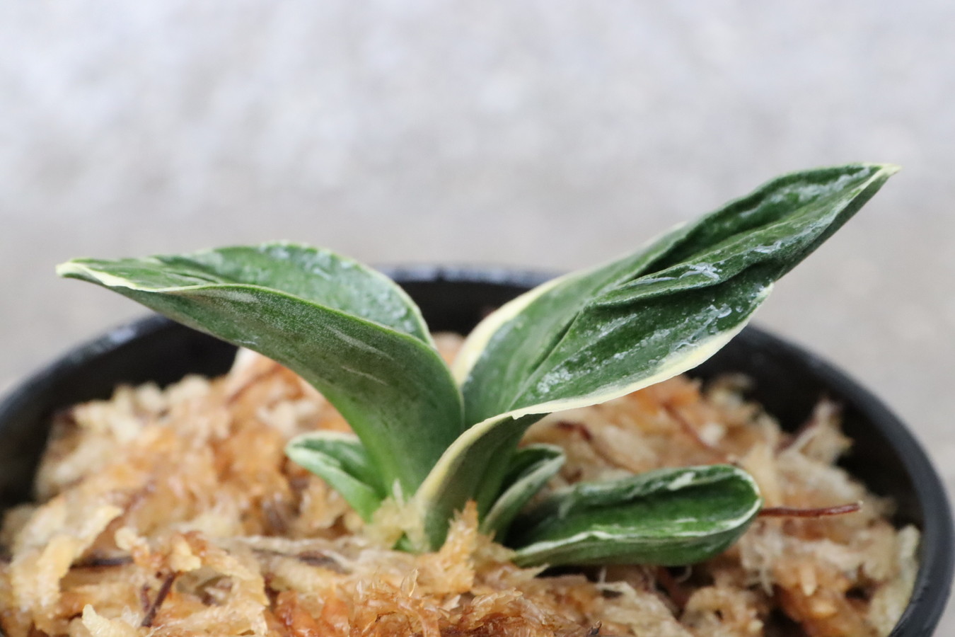 この品種の魅力は、「力和」でしか味わえない芸、丸葉の可愛らしい姿、その変化と、たくさんあります。杉山力蔵氏と岡田和吉氏が共有したため、『力和実生』と呼ばれ親しまれてました。昭和48年に待望の覆輪が完成。実生時代から常に人気で、三河地方では当時100万円以上の値が付いて、喧嘩するほどの奪い合いだったそうです(豊明園2代目談)。