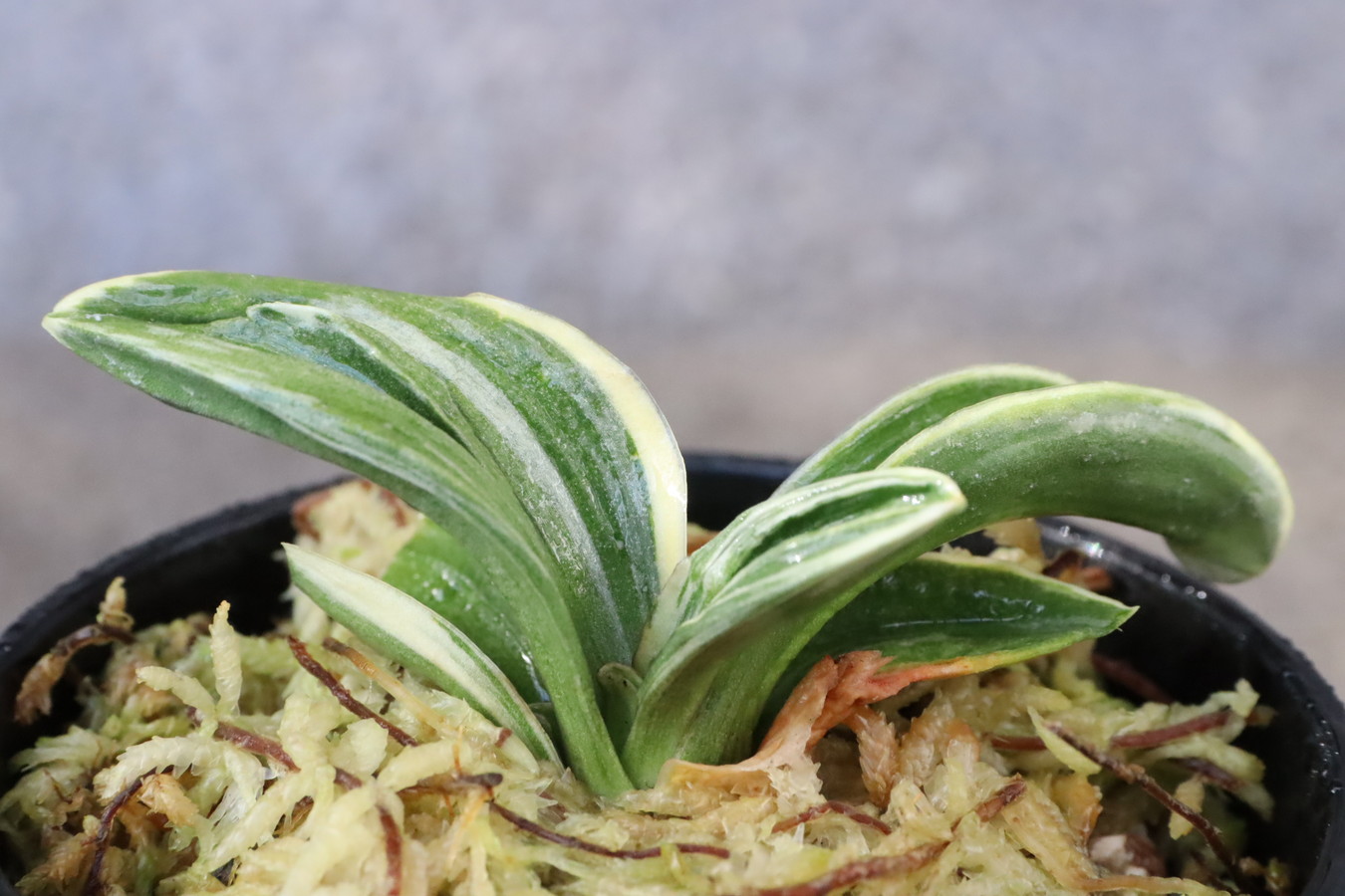 この品種の魅力は、「力和」でしか味わえない芸、丸葉の可愛らしい姿、その変化と、たくさんあります。杉山力蔵氏と岡田和吉氏が共有したため、『力和実生』と呼ばれ親しまれてました。昭和48年に待望の覆輪が完成。実生時代から常に人気で、三河地方では当時100万円以上(300万、500万)の値が付いて、俺が買う、いや俺が、という喧嘩するほどの奪い合いだったそうです(豊明園2代目談)。