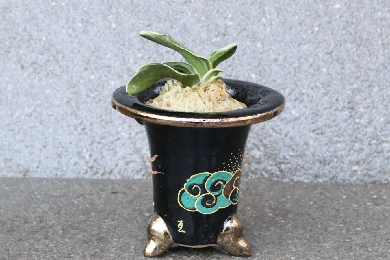 この品種の魅力は、「力和」でしか味わえない芸、丸葉の可愛らしい姿、その変化と、たくさんあります。杉山力蔵氏と岡田和吉氏が共有したため、『力和実生』と呼ばれ親しまれてました。昭和48年に待望の覆輪が完成。実生時代から常に人気で、三河地方では当時100万円以上の値が付いて、俺が買う、いや俺が、という喧嘩するほどの奪い合いだったそうです(豊明園2代目談)。