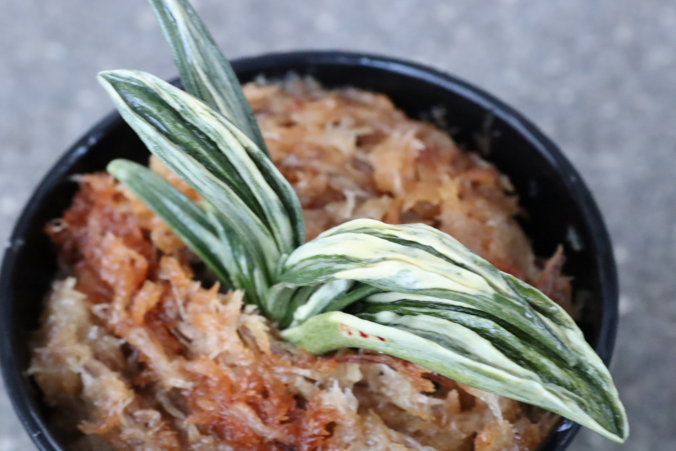 濃緑色の肉厚葉に雅糸竜、熨斗葉を現します。