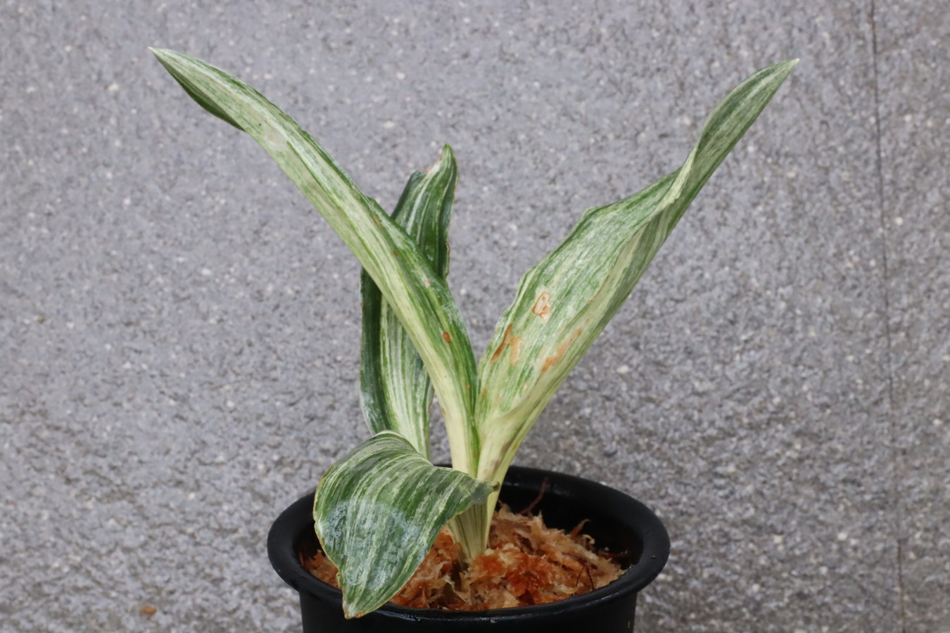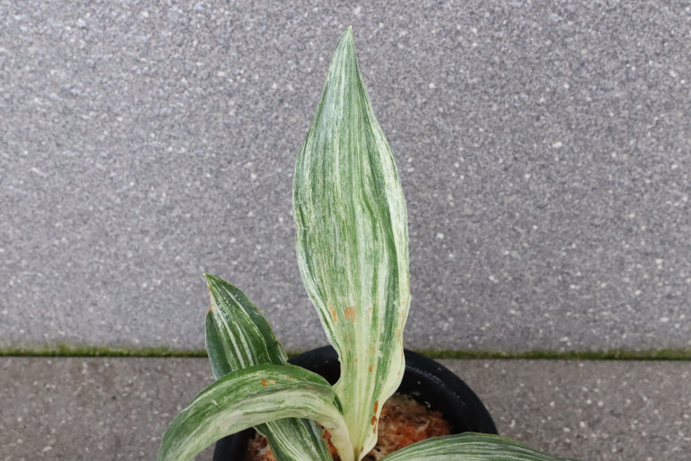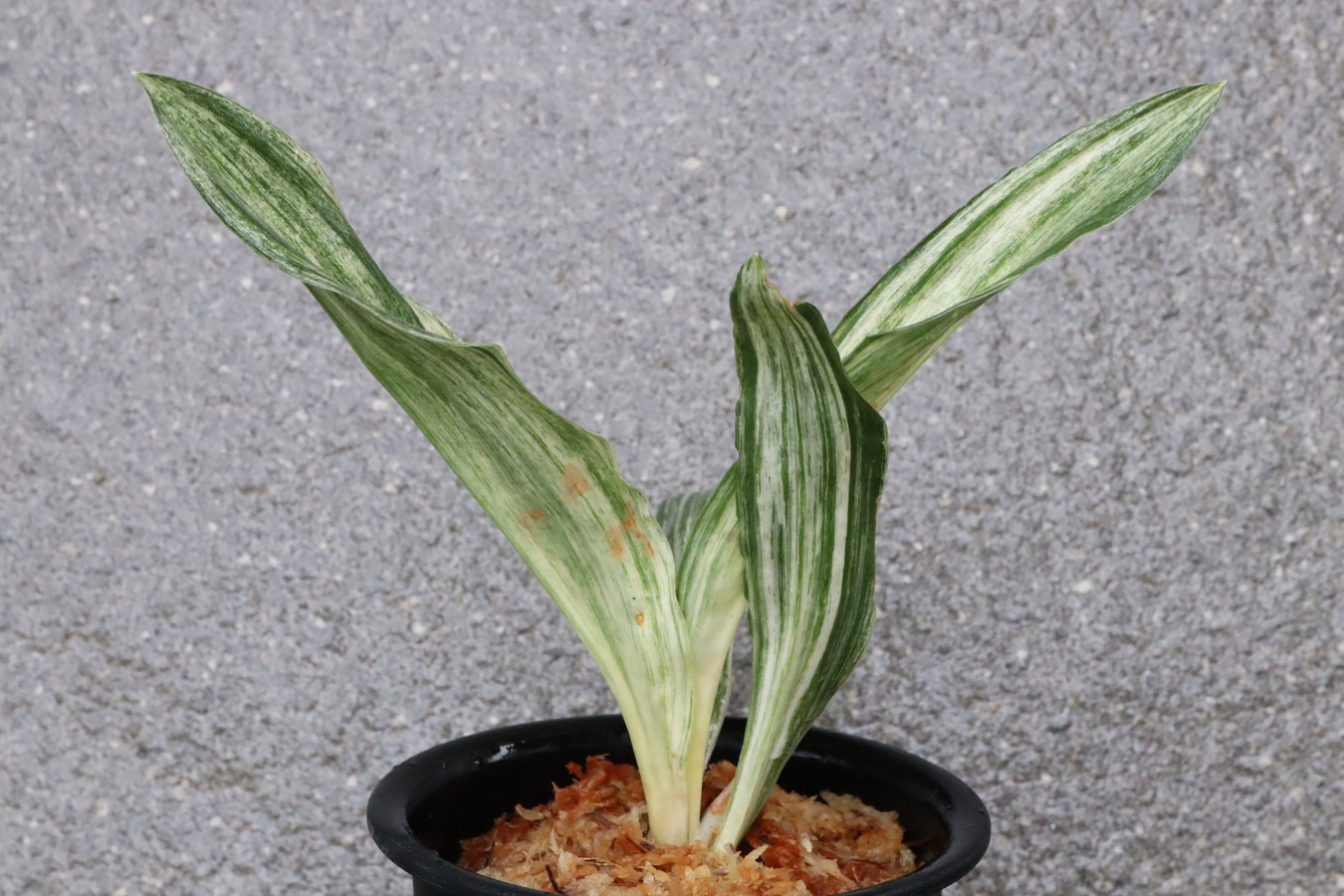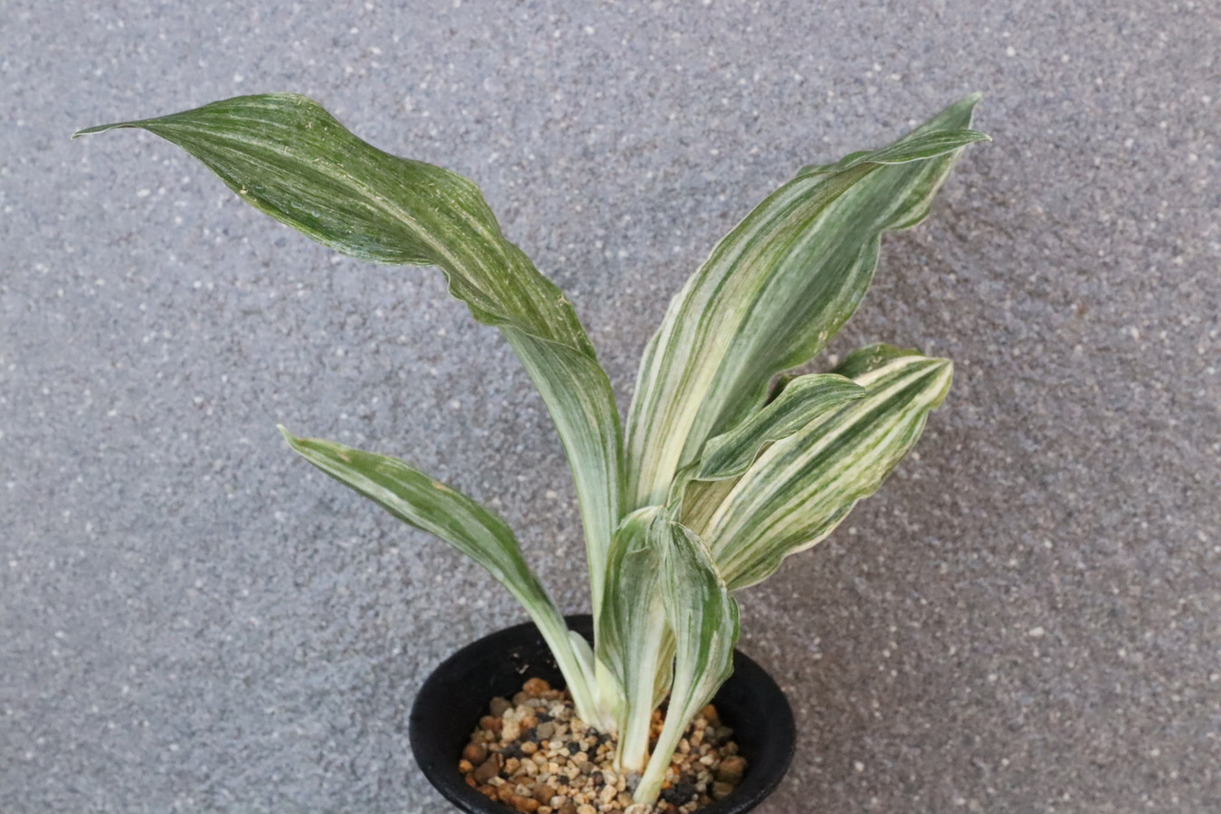 広い葉巾に白斑を見せる、清々しく雄大な品種。