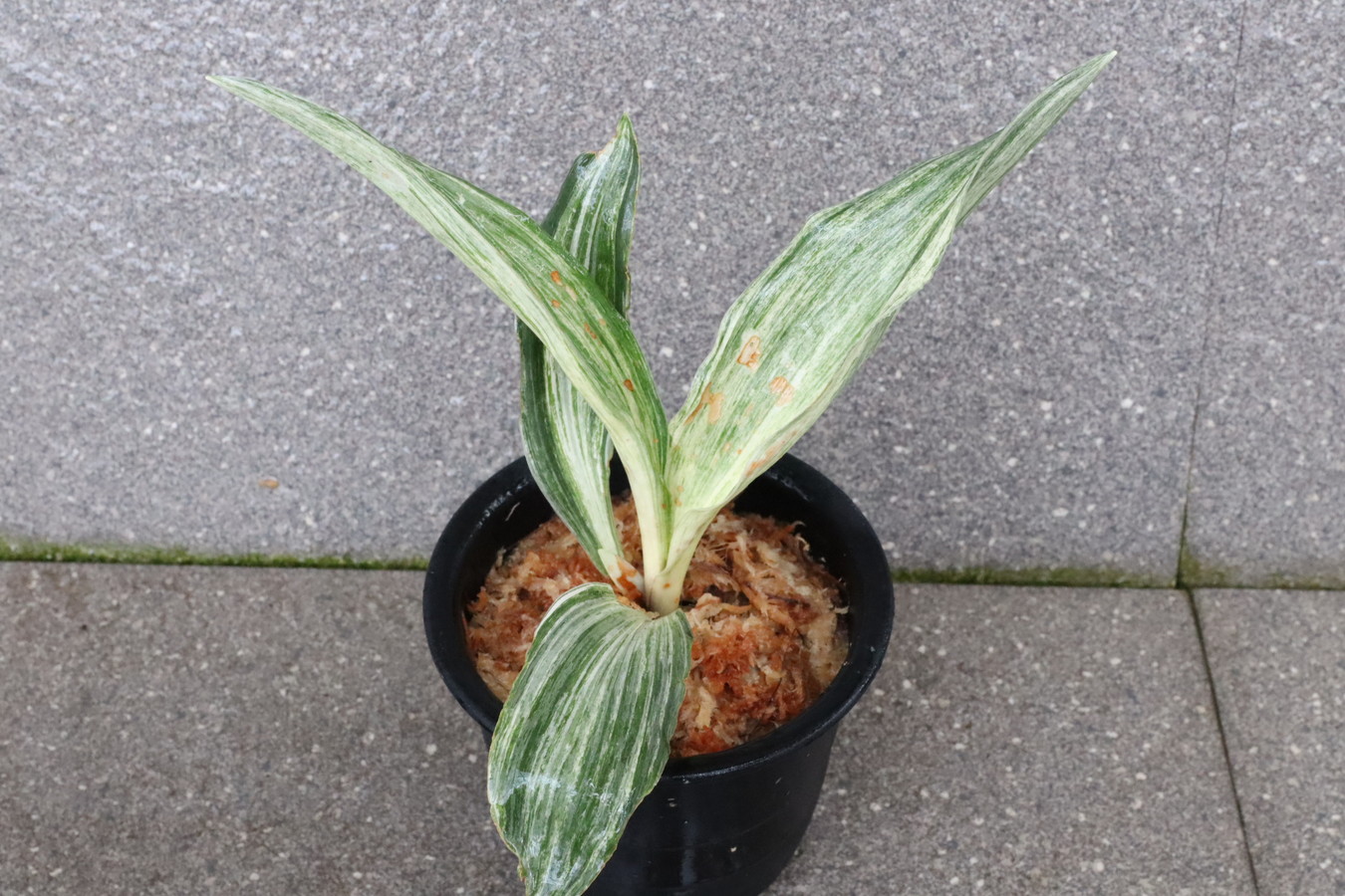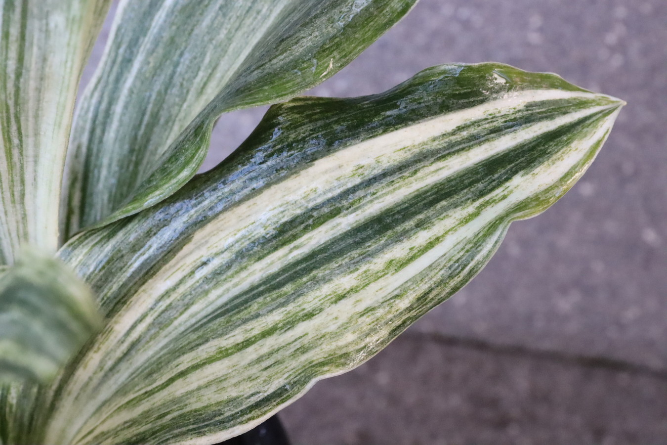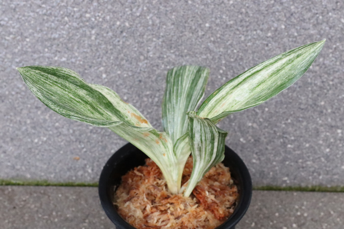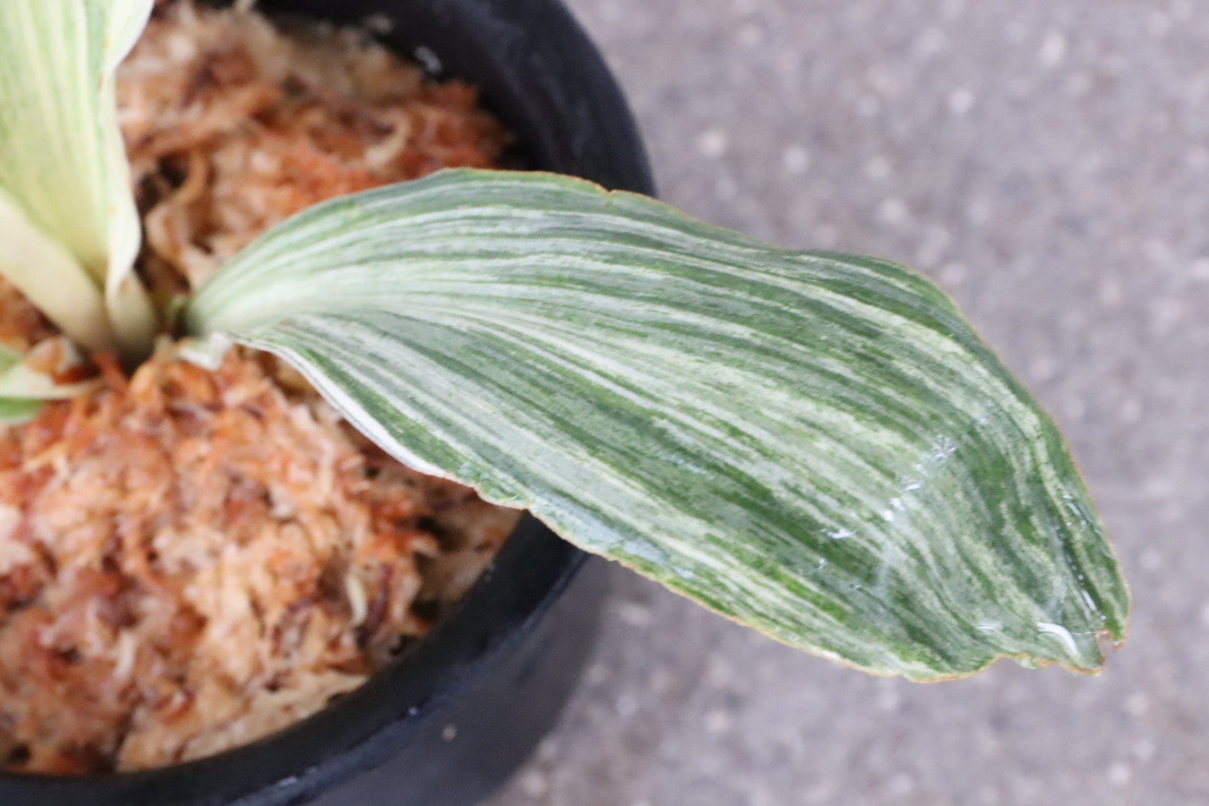 広い葉巾に白斑を見せる、清々しく雄大な品種。
