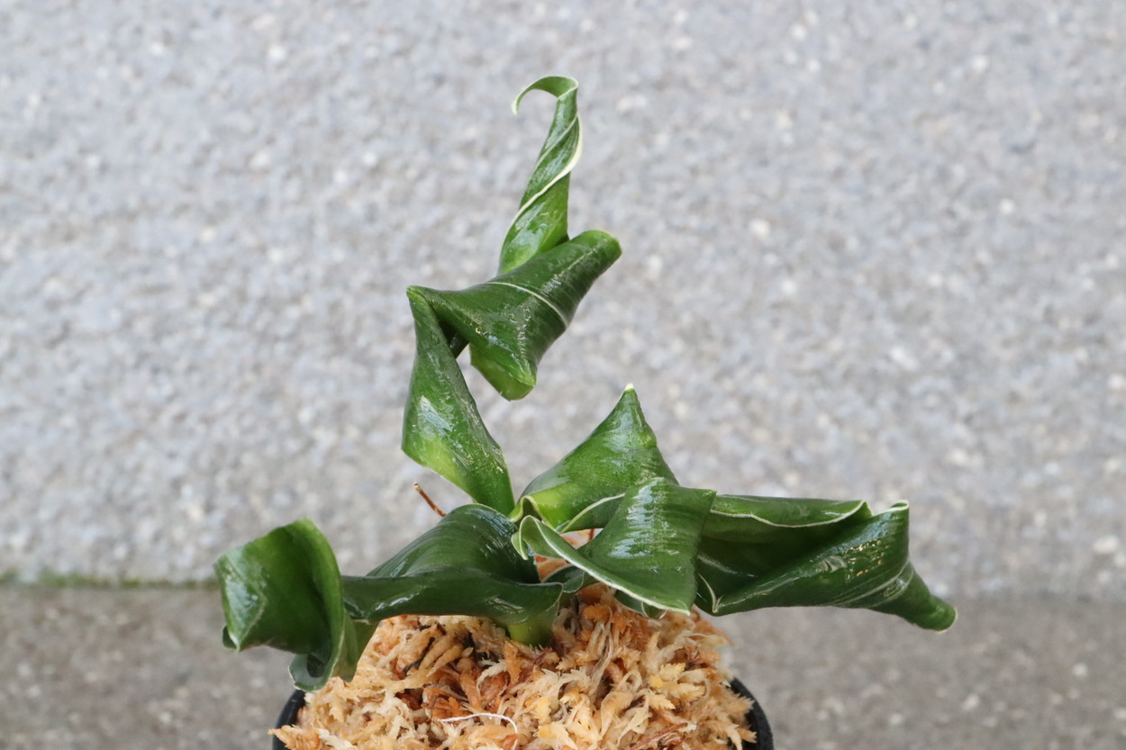 濃緑色の角巻き葉に低い総雅糸竜と二面甲竜をみせる美しい品種。