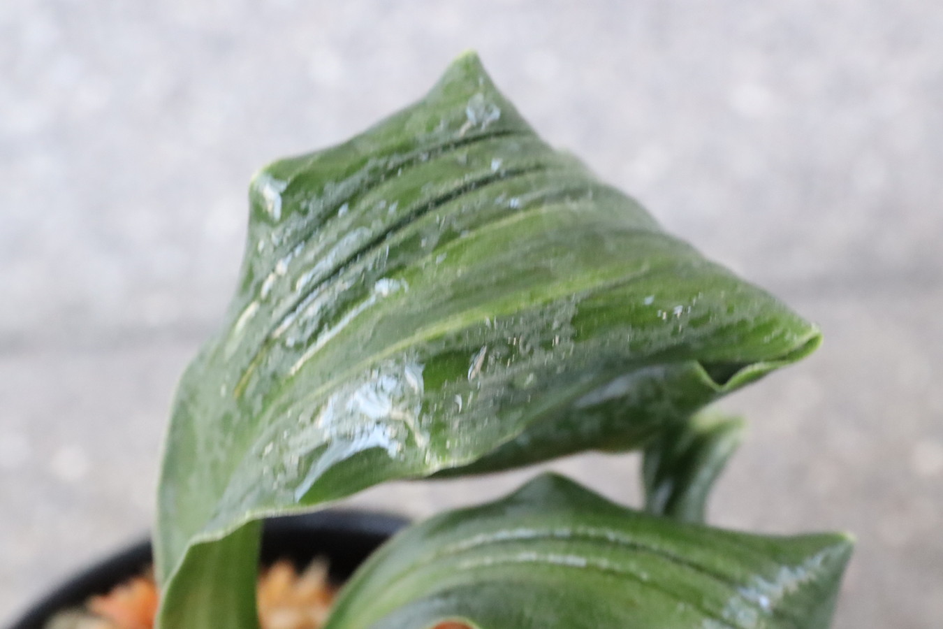 万年青は一つ殖えるのに5年とも10年ともいわれる、寿命の非常に長い植物です。一つ一つの苗でも1-3年ほどかけて育て上げています。その間には台風、猛暑、寒さ、自然の虫など様々な障害をへて育っていくので、完全に無傷の万年青はありません。人以上の寿命のある万年青。風邪を一度も引いたことがない、かすり傷も一度もない人がいないように、ちょっとした傷もある意味、懸命に生きている証。そんな風に考えていただけると有難いです。