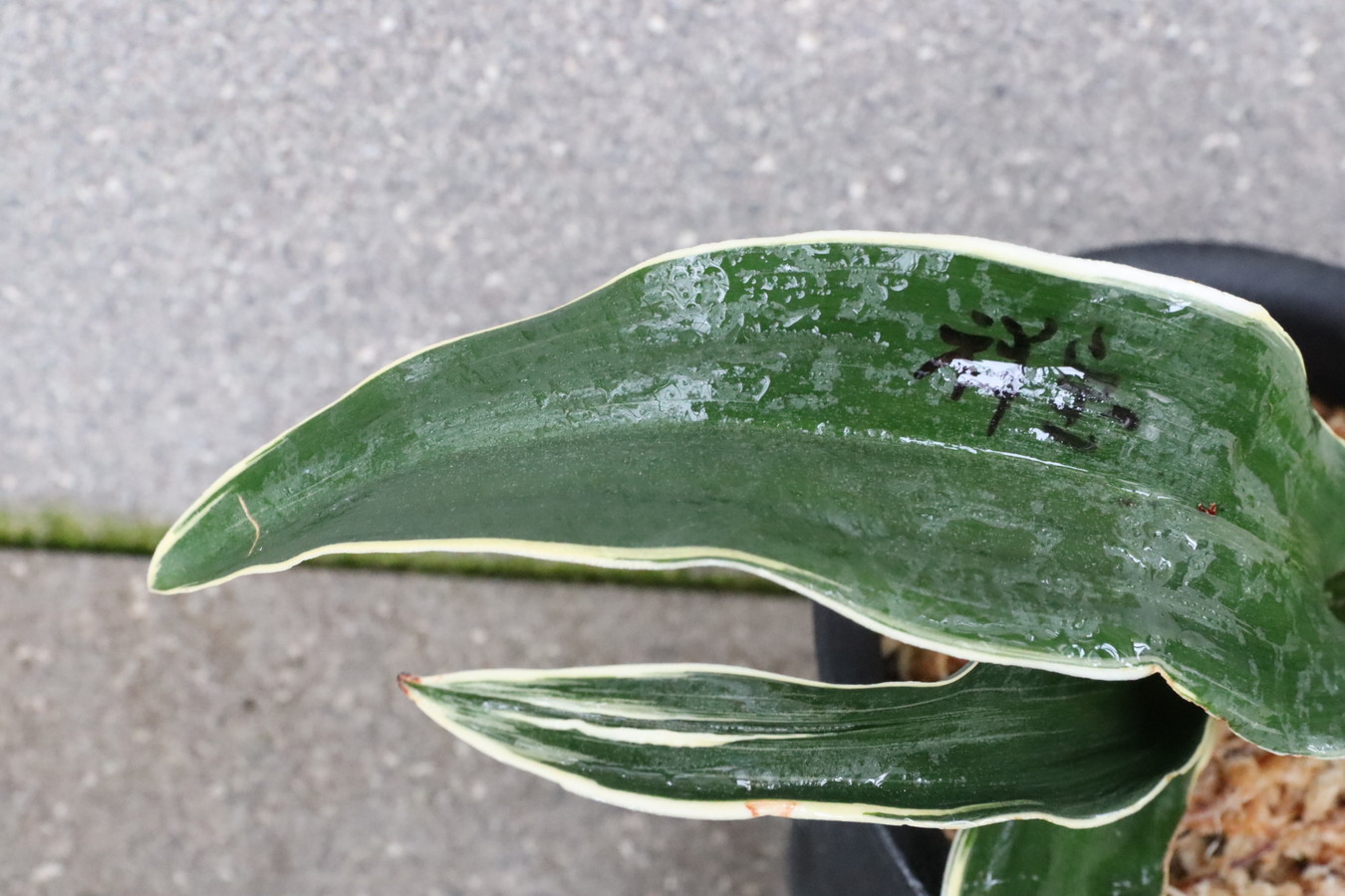V:V(カキガラ錦福)は最高の実親で、壽冠を生み、羅紗の実績は多数。実親もたくさん産んでいる。芸、地合いも深みのある最上の子を産む 2020年時点で、苗が120万とも、250万ともいわれる寿冠を作出した親.実生は雅糸竜強く、葉肉あり、葉巾もくる。Vというのはチェックマークのことで、羅紗実生では素晴らしい実績を示した小野田氏が特に羅紗、よくなる確率の成績素晴らしいとしてチェックマーク(V)をつけたことから。