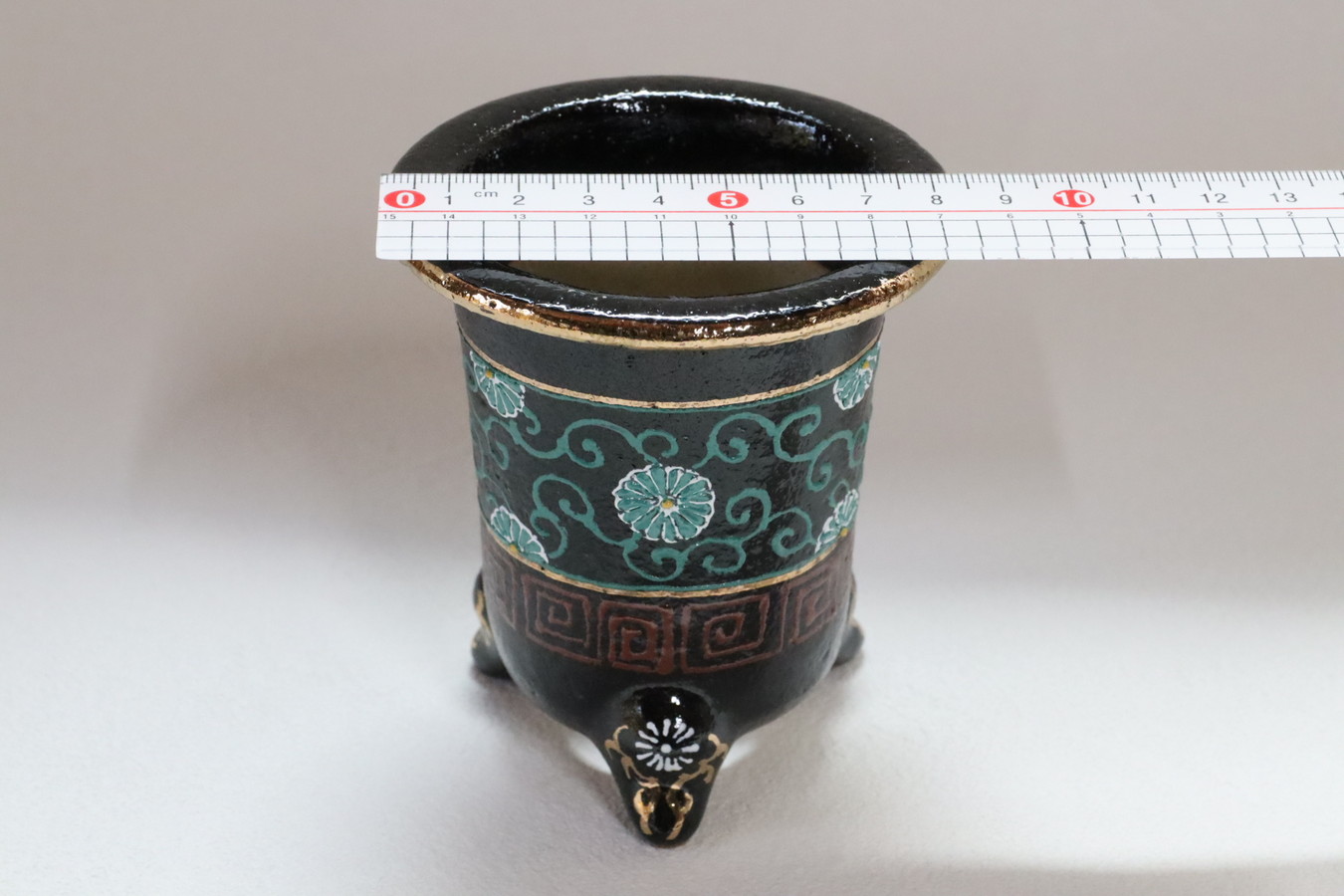 2531,古代鉢 華唐草雷紋 万年青鉢 外径約8.4cm 高さ約9.4cm この形製作極少