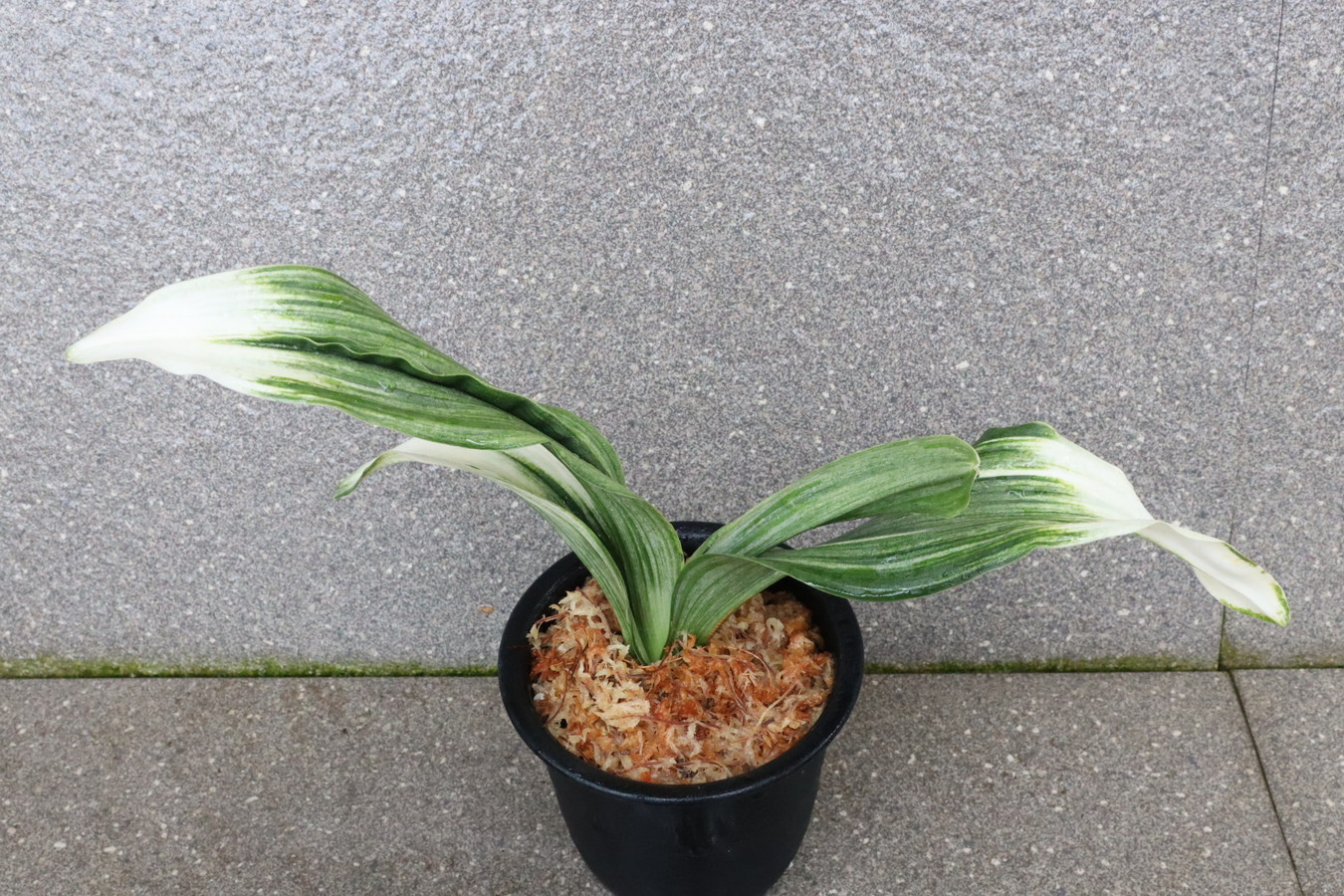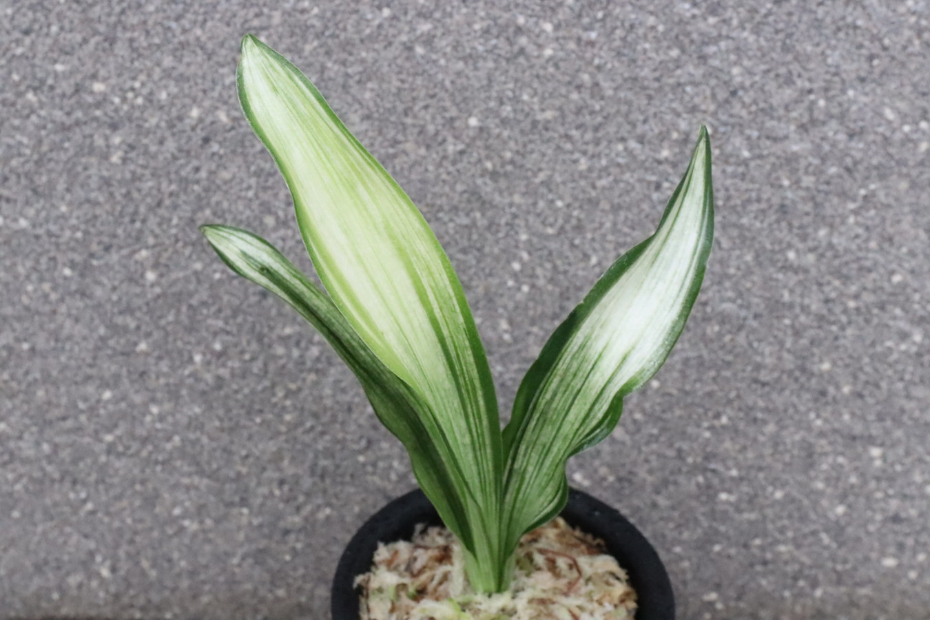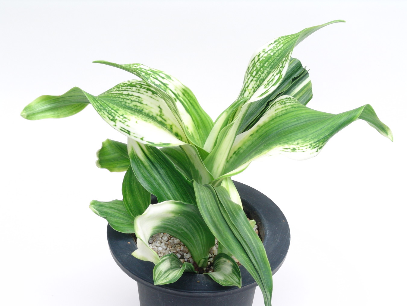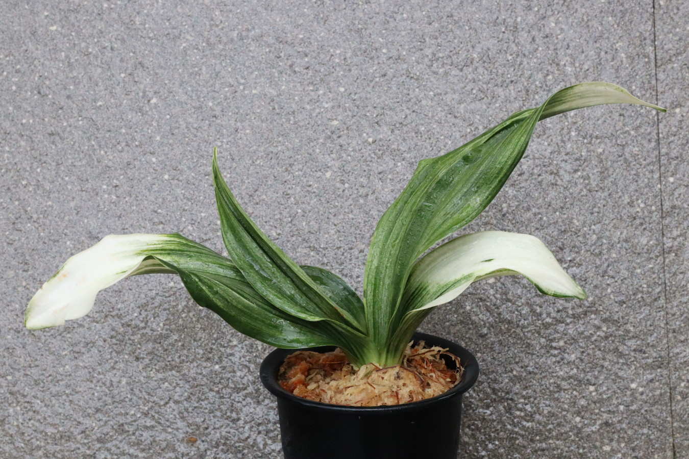 ふっくらした白斑葉は虎班を見せ肉厚で紺覆輪を現わす。