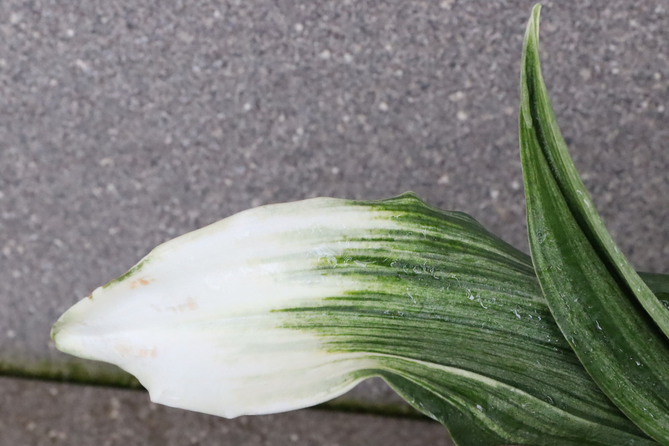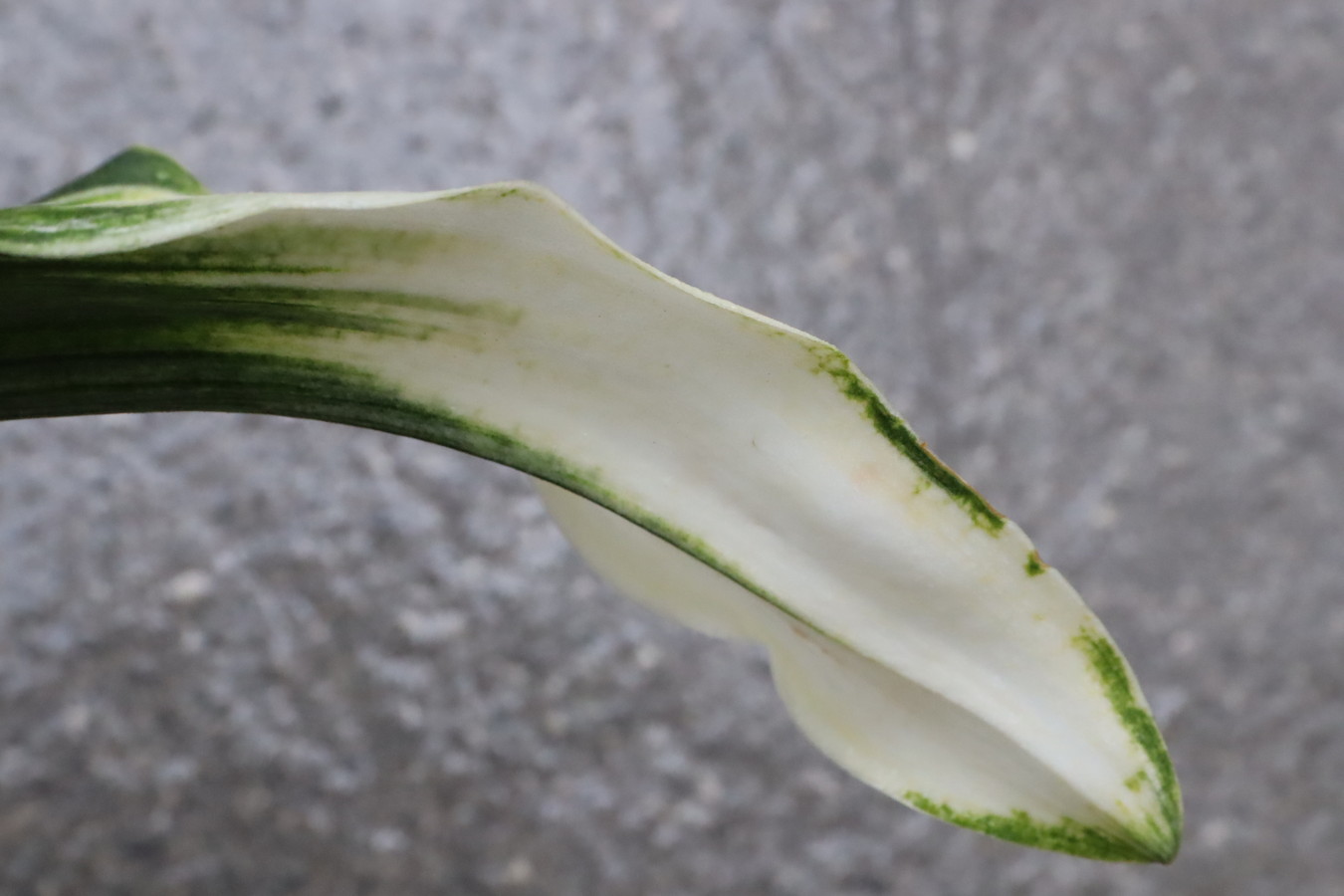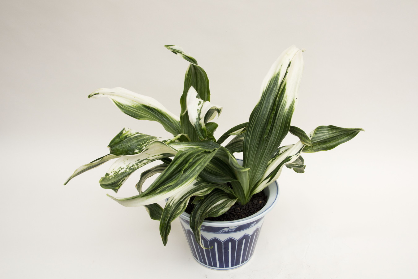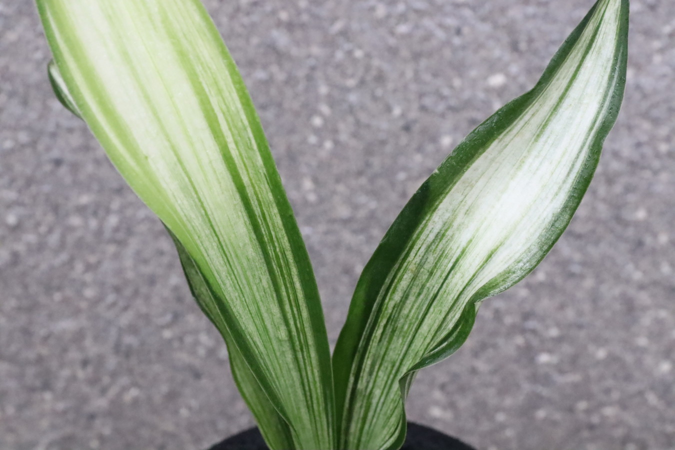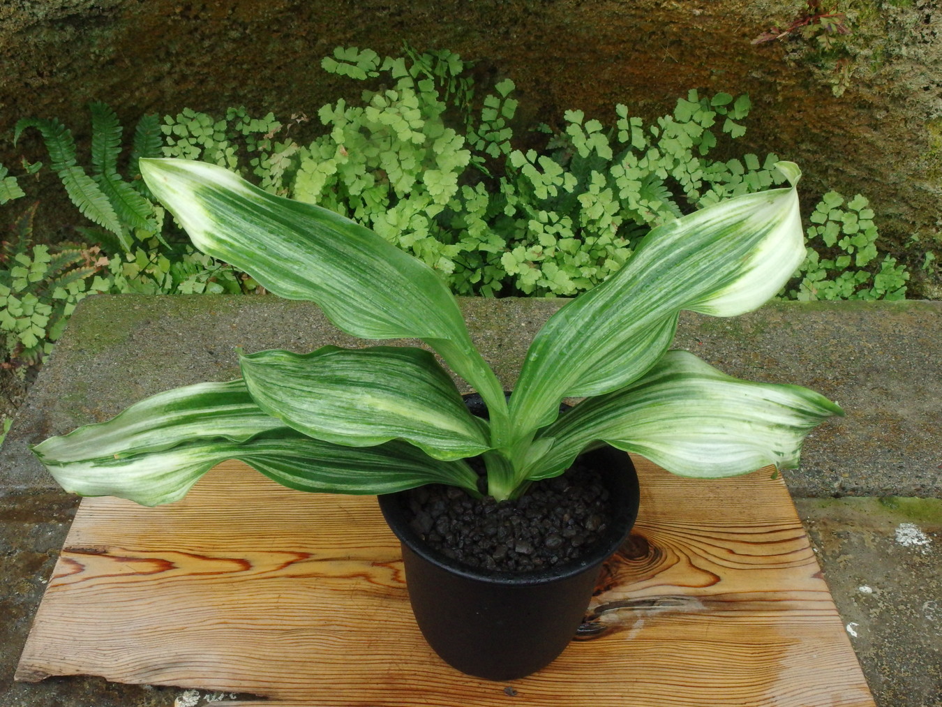 ふっくらした白斑葉は虎班を見せ肉厚で紺覆輪を現わす。