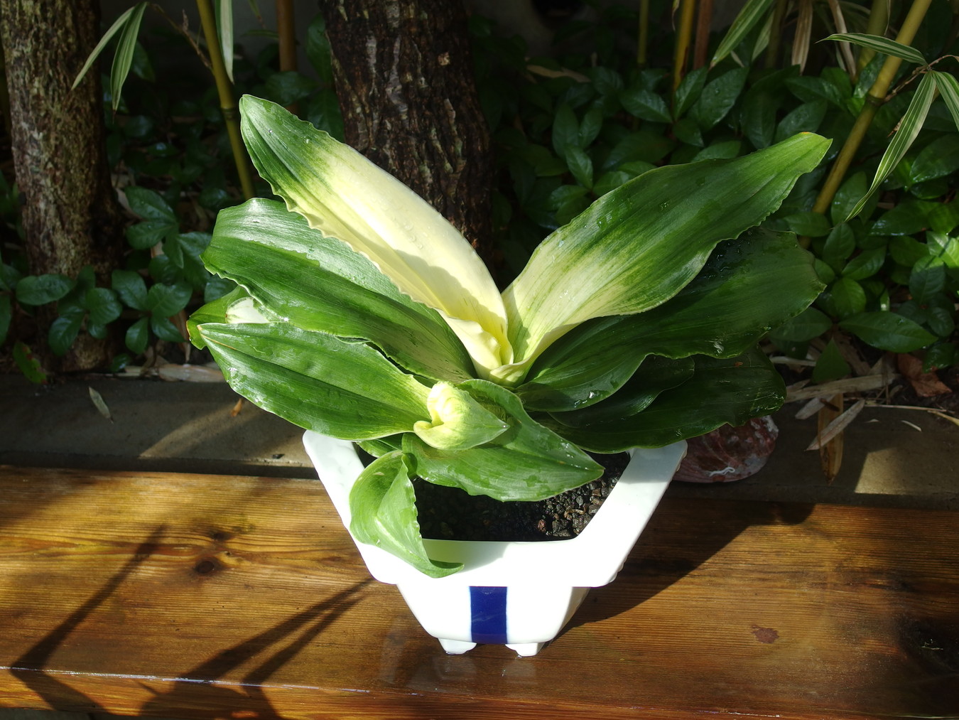 曙柄は良く出やすい。新芽が伸びる頃より日光をよく摂るようにすると柄が現れやすい、10月~12月まで良く日をとると曙柄が少し白っぽくなります。また日の摂り具合が少ないと緑葉の部分が増えてきます。