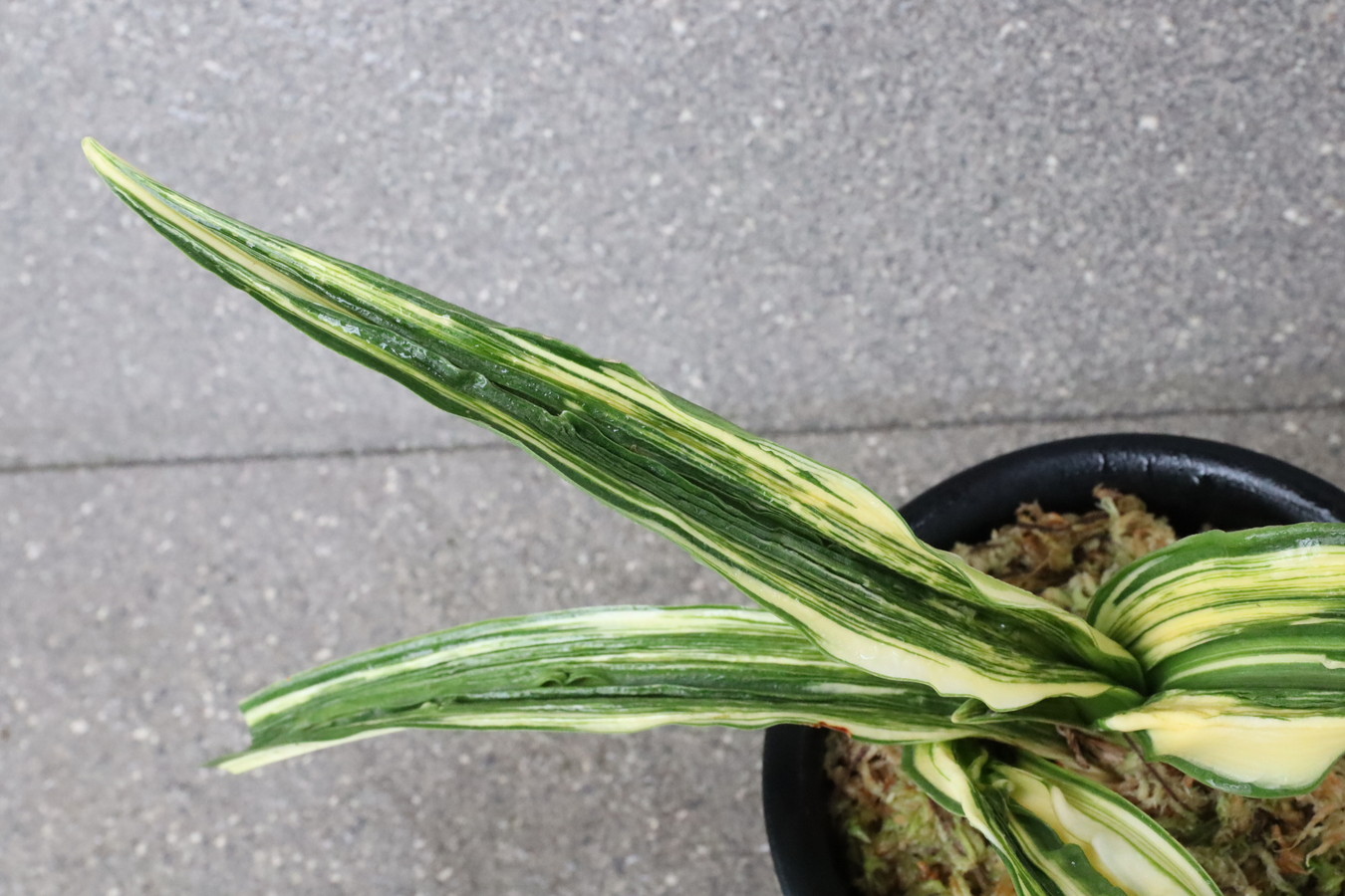 太陽:今の万年青界四天王とも言われる人気品種であり、最高の実親で、岳陽を生み、羅紗の実績は多数。実親もたくさん産んでいる。親が錦麒麟と福寿龍という素晴らしい実親なので、錦麒麟型、福寿龍型のような実生もみせる