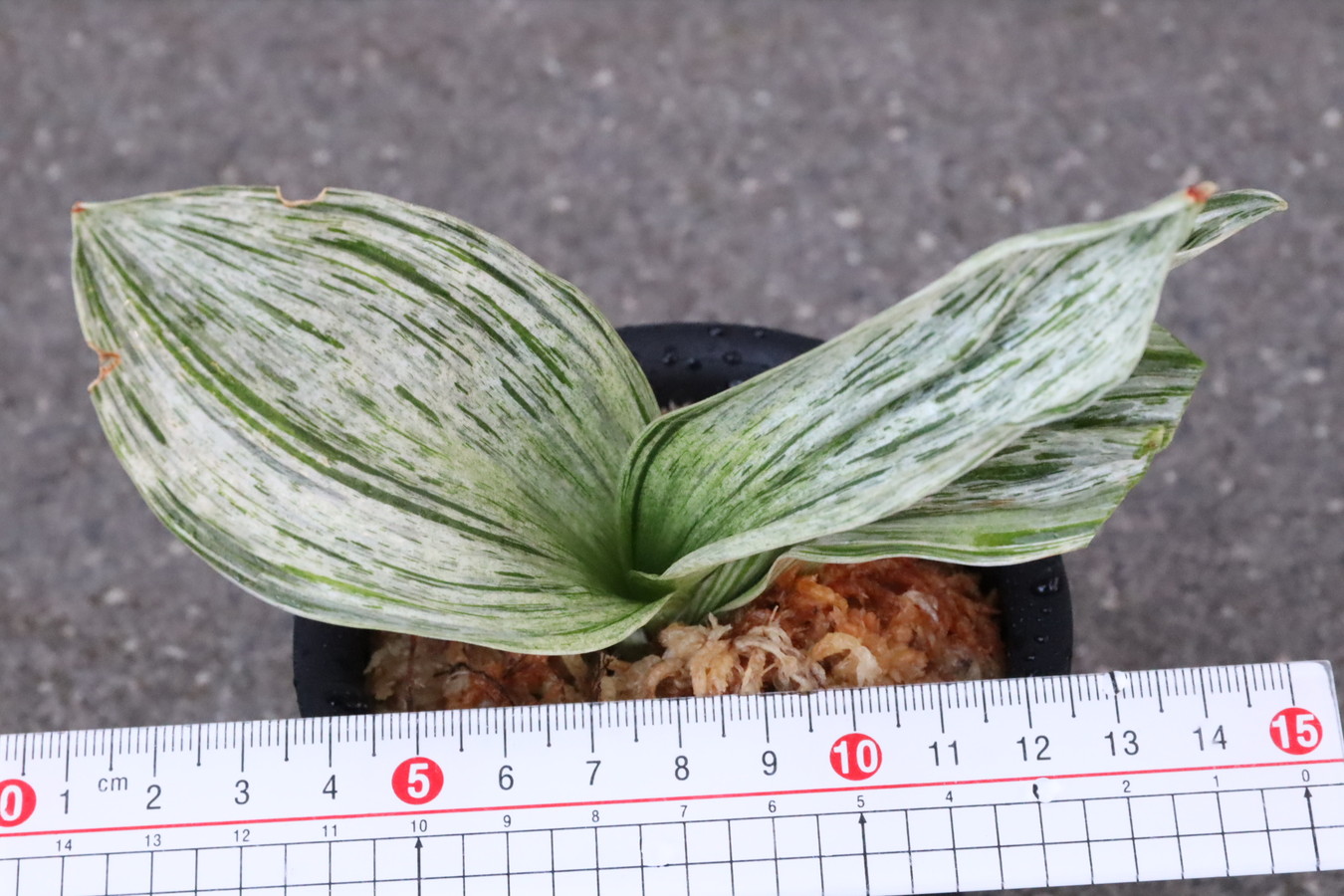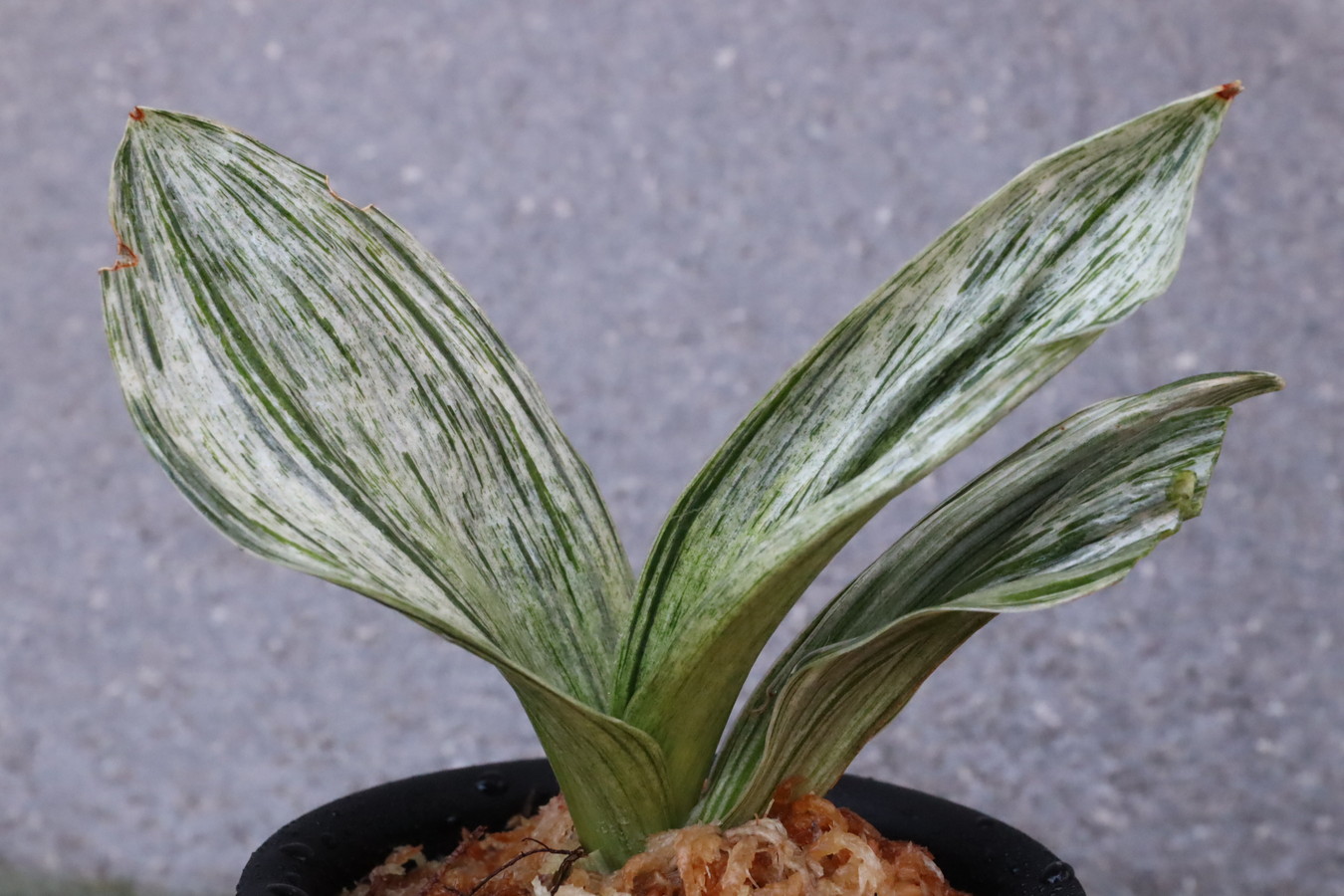 葉の全面を雅糸竜が覆うこともあり、芸非常に強い。日の具合がちょうどよいと、葉の半分が千代田斑に、半分が雅糸龍になり、時おり、玉龍を見せる。葉先はとがる。