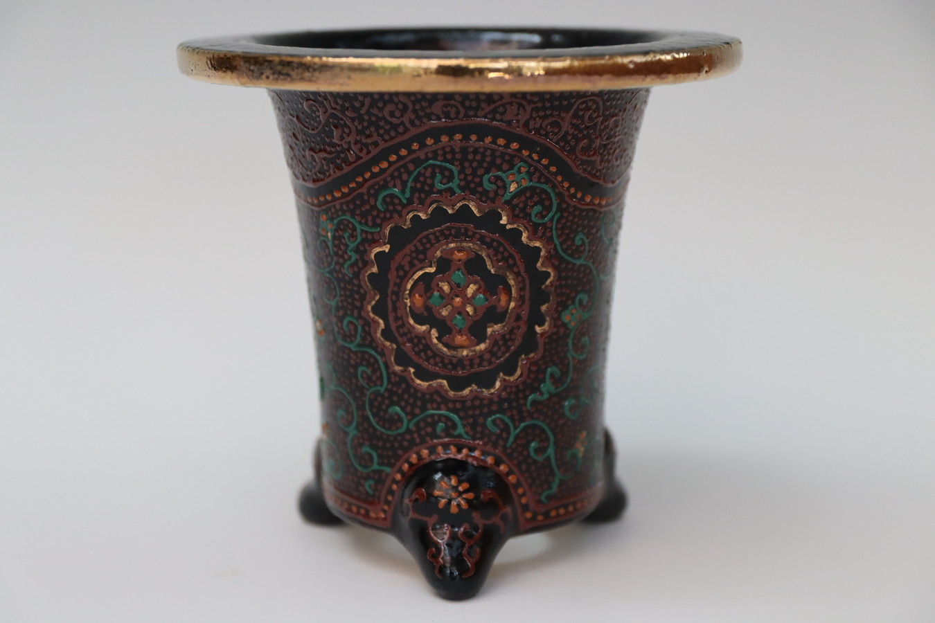 3148,鉄彩 植木鉢 外径約12.0cm 高さ約8.8cm kawasakiTakao