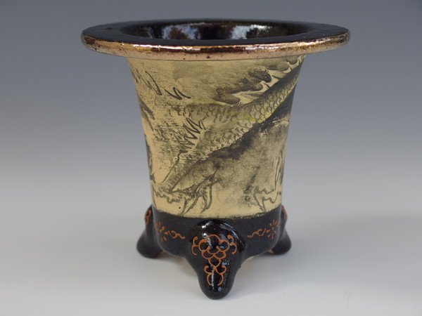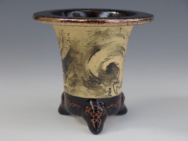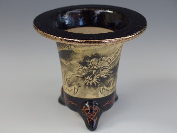 亘作 万年青鉢 オモト鉢楽焼は天正年間(約400年前)に始まる日本独特の焼き物です。楽焼は《急熱急冷》という特殊な焼成方法をとります。急熱急冷だから、鉢に細かな 微細な穴ができ、通気を良くしています。おもと鉢 楽鉢 楽鉢の樂しみ