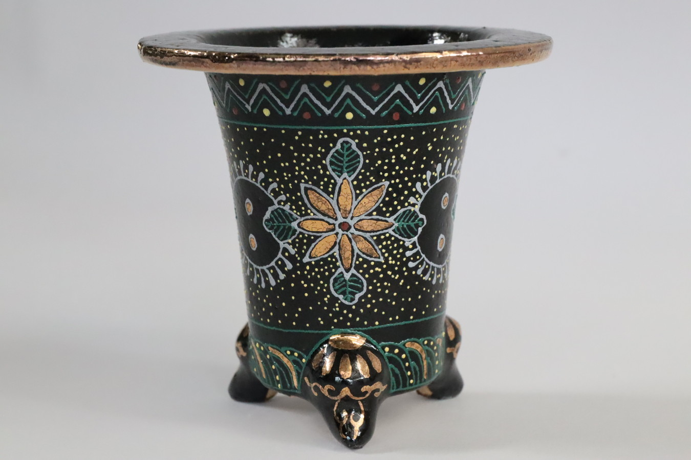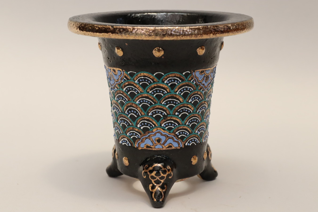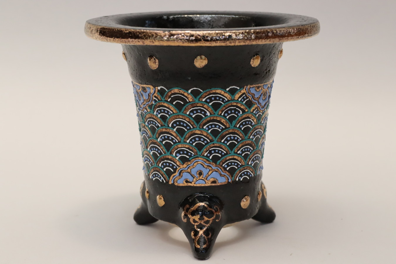 2572,太鼓胴 青海波金華飾り 万年青楽鉢 外径約9.9cm 【38000円→夏季特価】里サイン