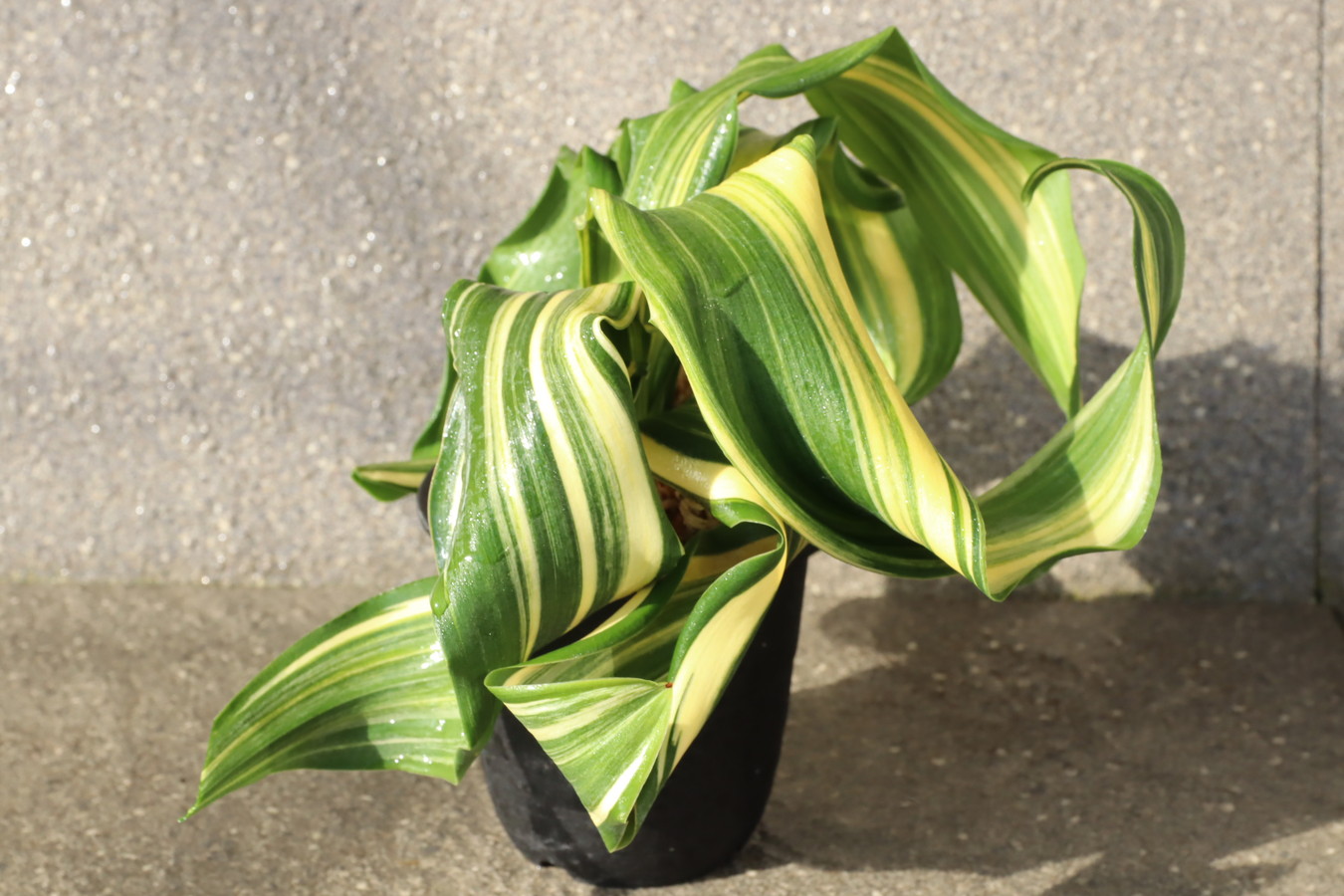 自然に葉が巻き込むという、他の植物には見られない独特の姿をもち、その姿の美しさゆえに、江戸時代にはすでに先人たちが見出し、大切に守り伝えてきた系統です。
