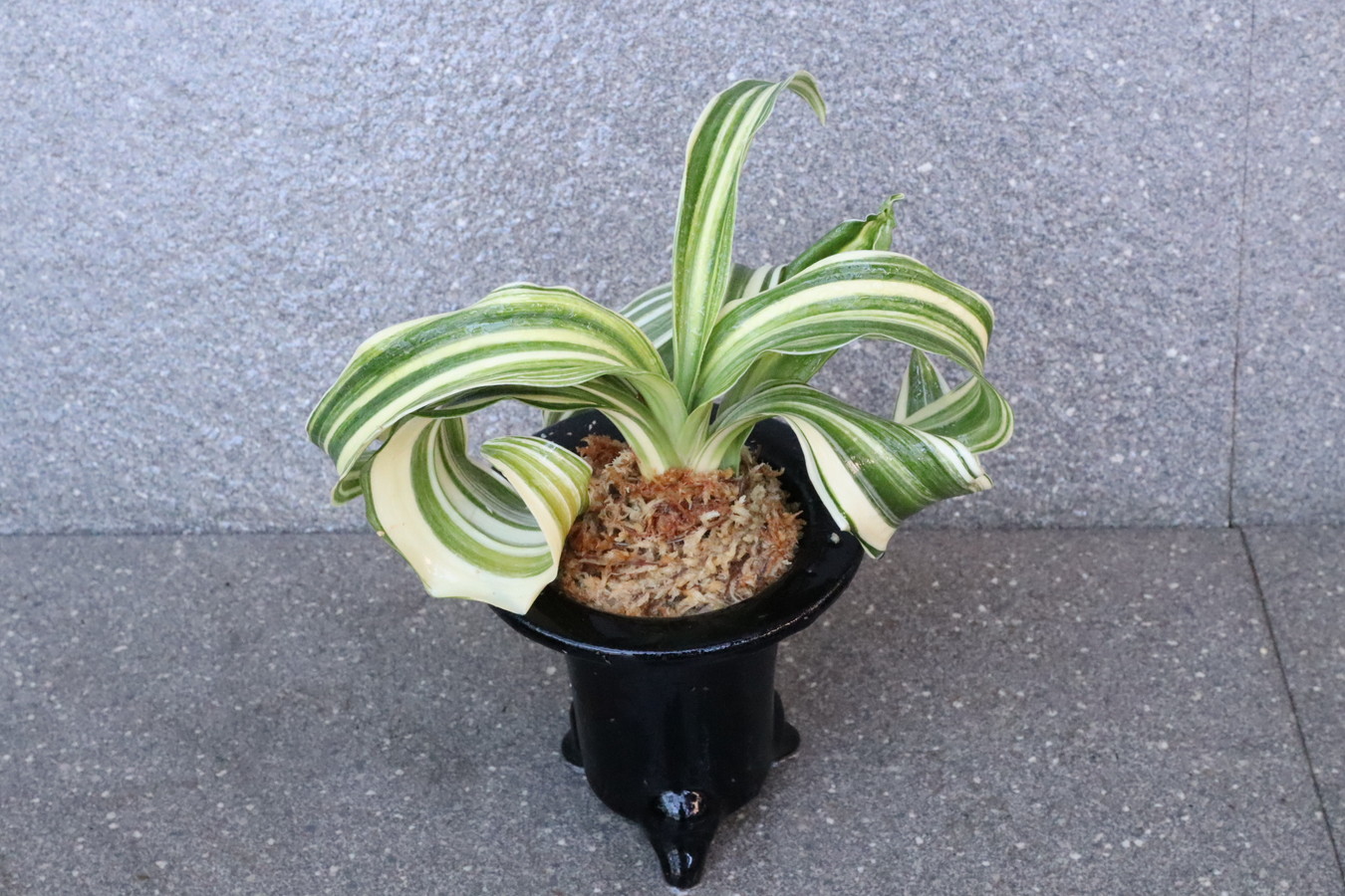 今では、EUなど海外に送ることが多い希少な獅子万年青。非常に珍しい葉が自然に巻く萬年青で、先人が江戸時代には見出して現代に大切に伝えています