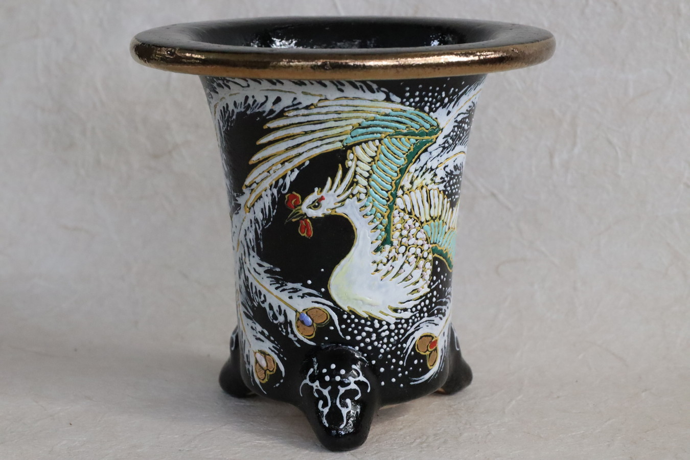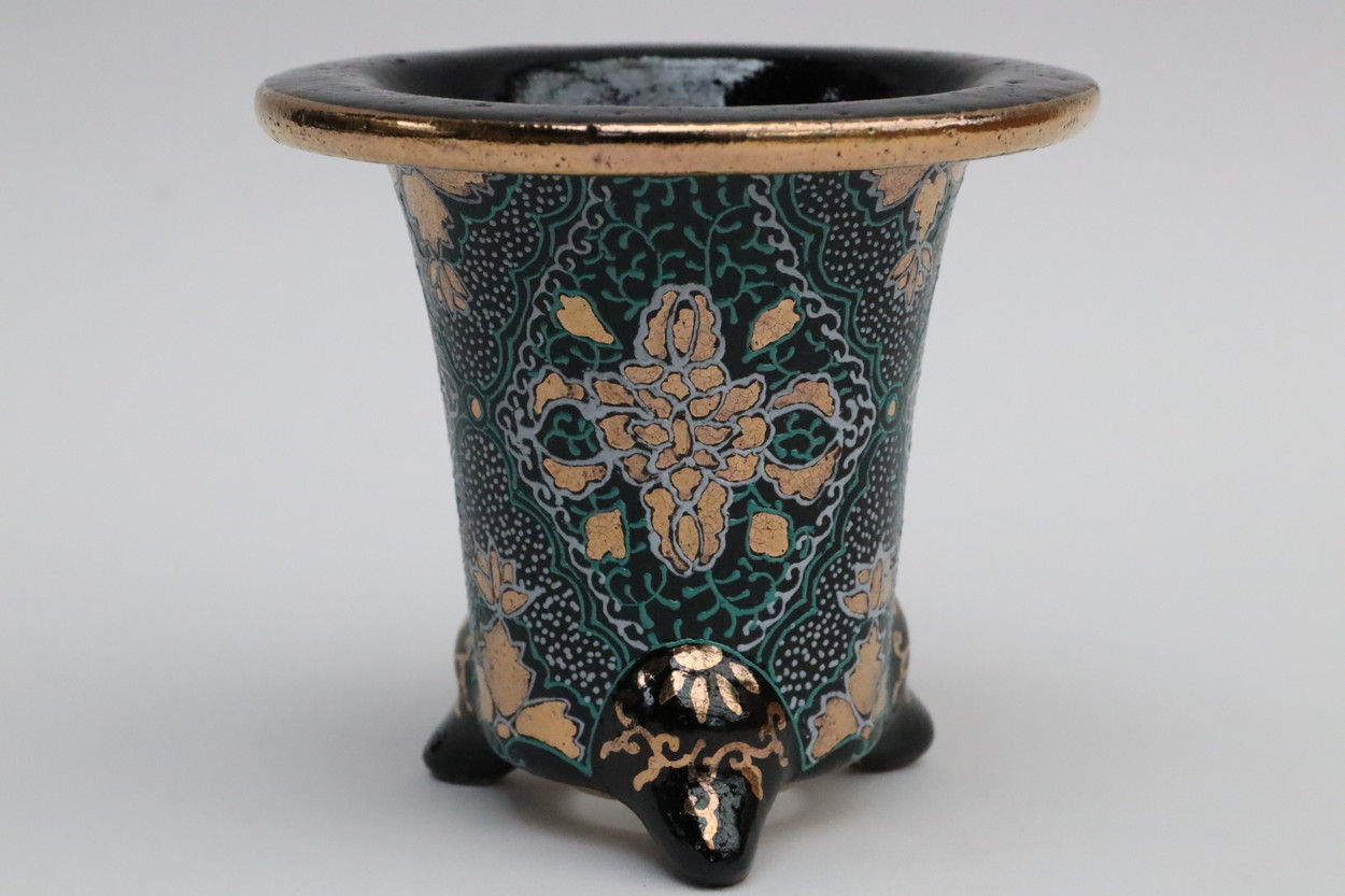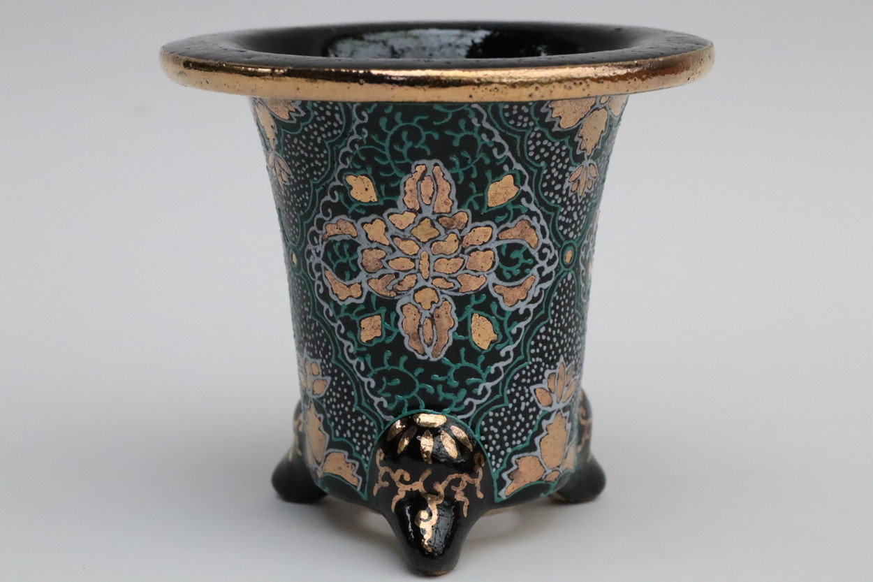 2069,金華唐草 外径約9.6cm 最初期の作品華サインなし 賀茂黒