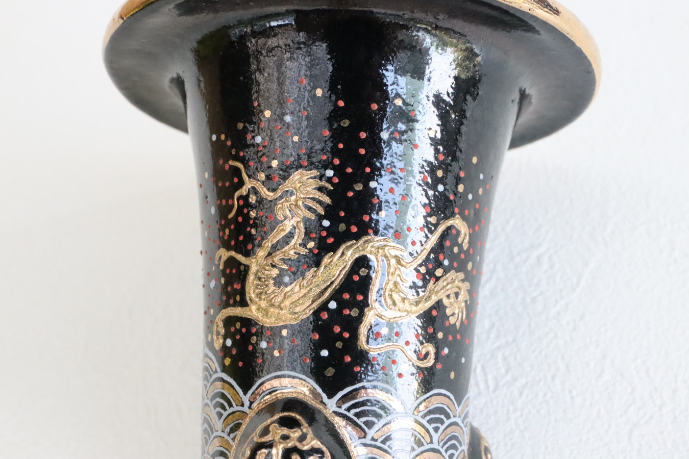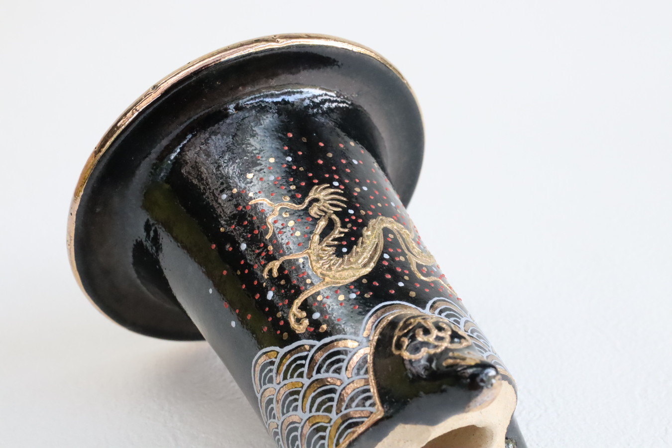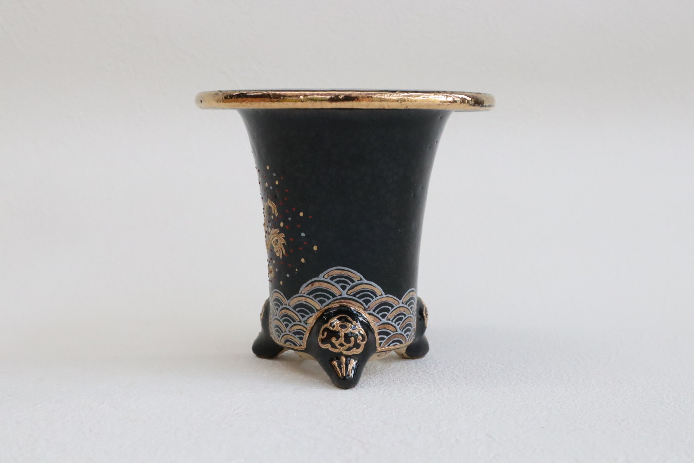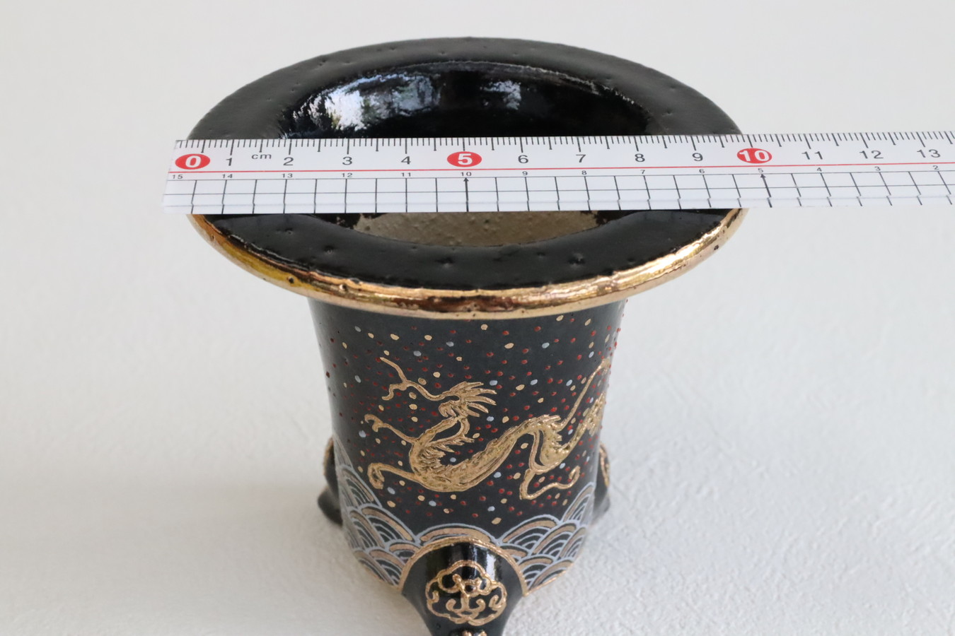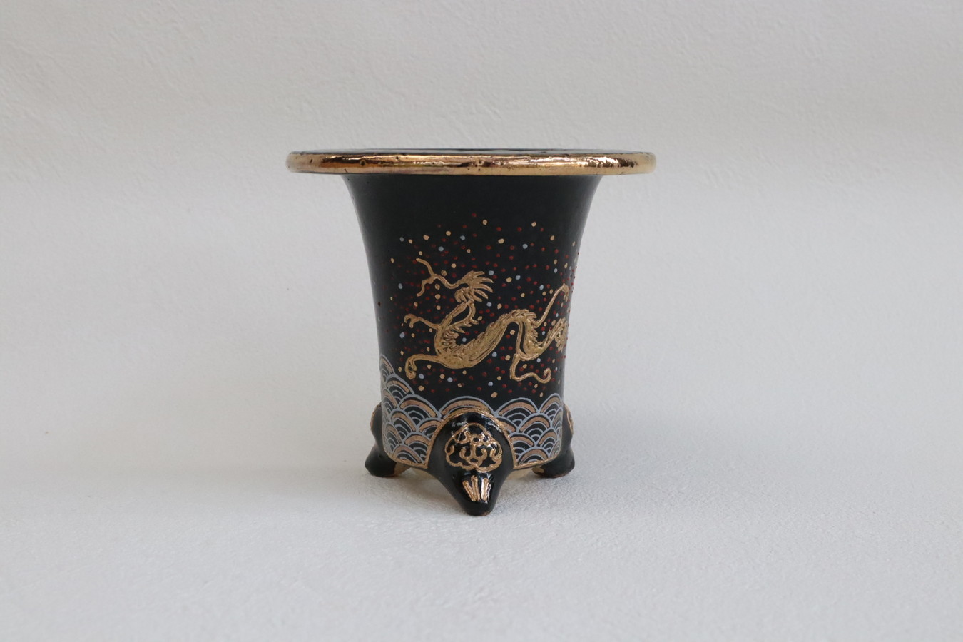 2524,加茂黒 金古代龍 青海波 外径約10.1cm 華サイン 賀茂黒
