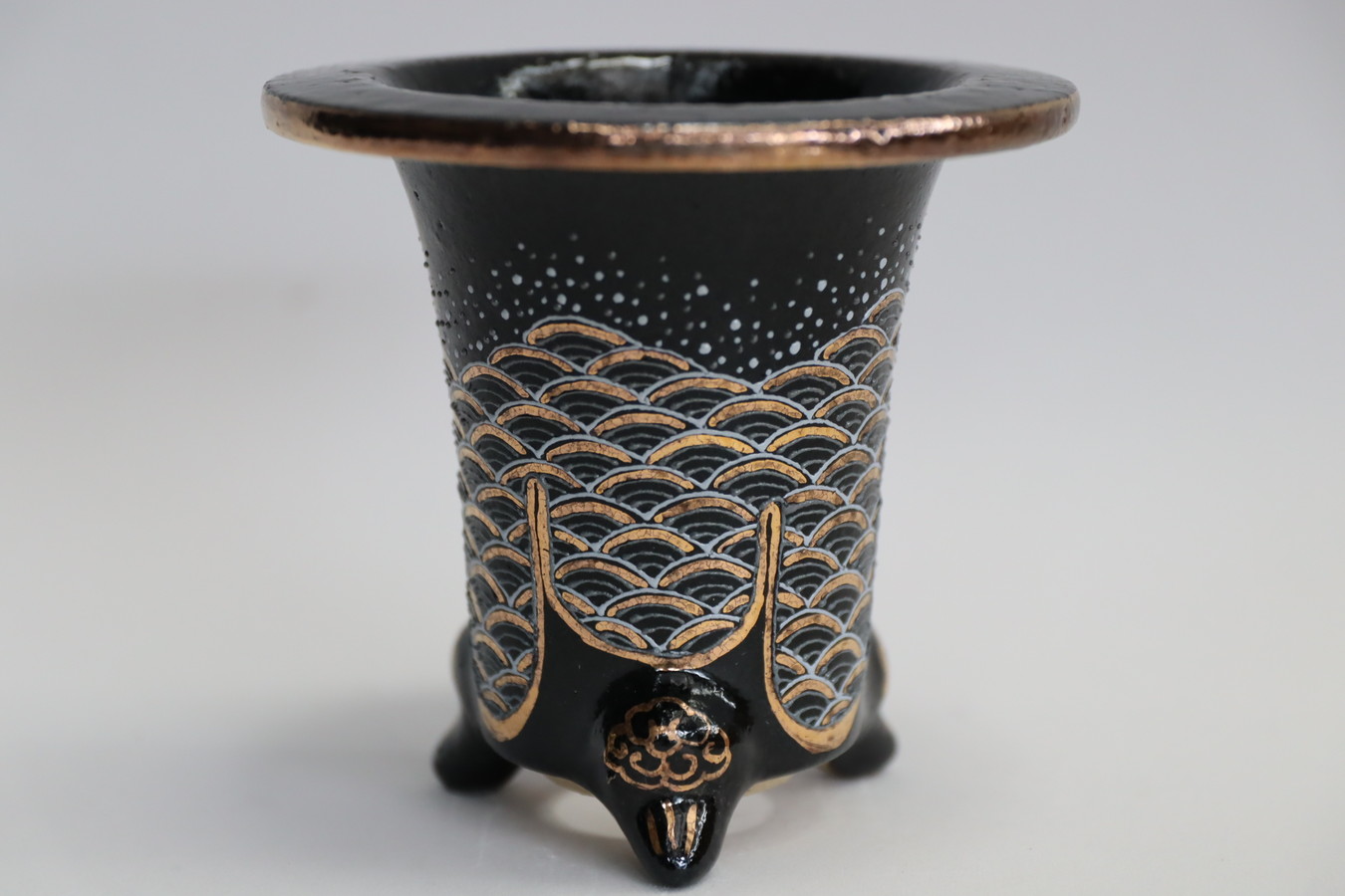 2474, 青海波 錦鉢 外径約10.1cm 華サイン 名作
