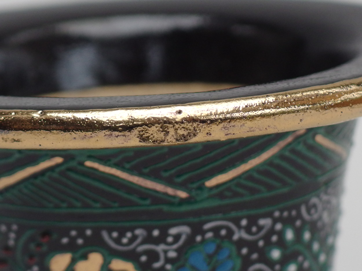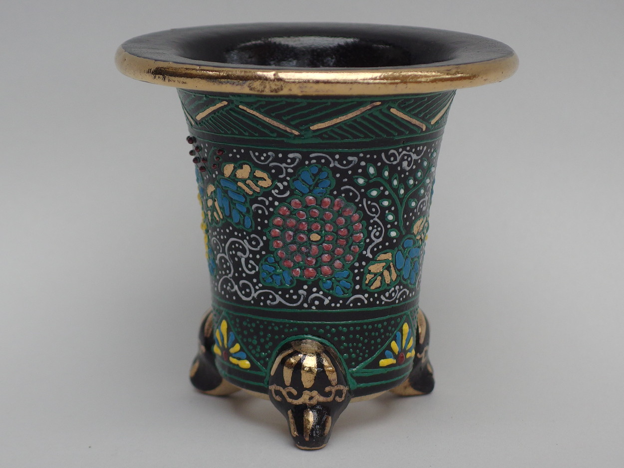 2070, 大輪菊 唐草 萬年青楽鉢 外形約10.5cm 絵付け師 利山 新