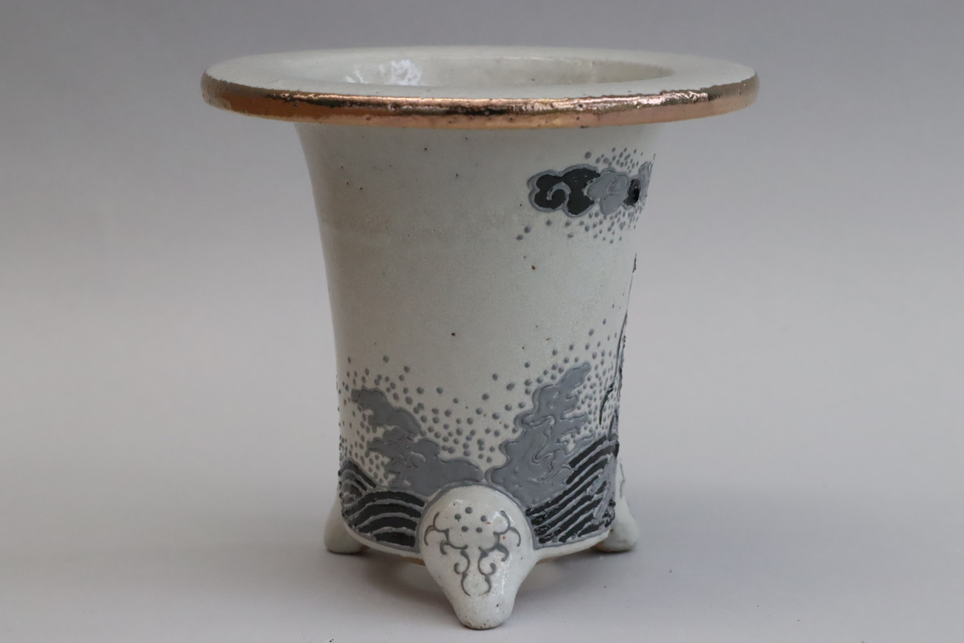 2103,白地黒龍 万年青楽鉢 外径約10.6cm 亘 新鉢【18800→人気特価!】
