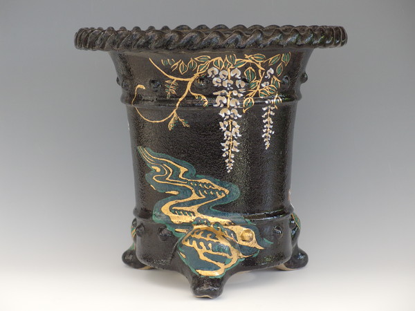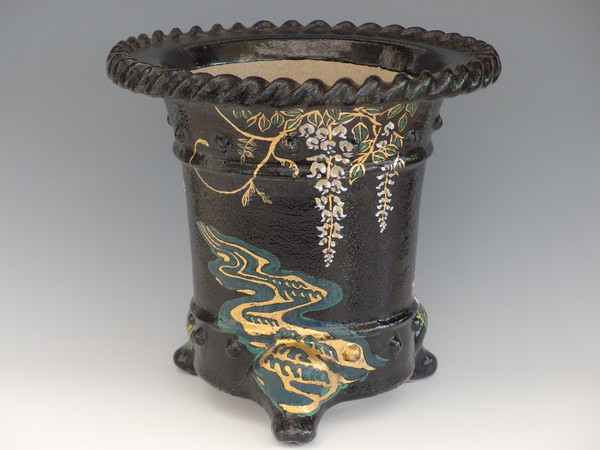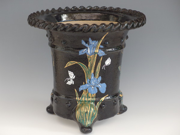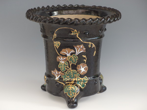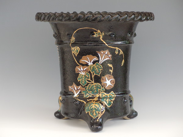 4900,縄縁太鼓胴3面花鉢 外形 約27cm