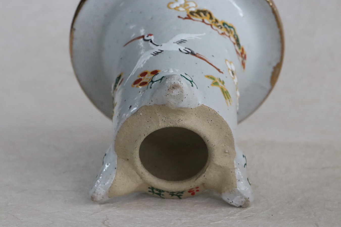 2468,白地 吉祥鶴 外径約10.3cm 梅花サイン